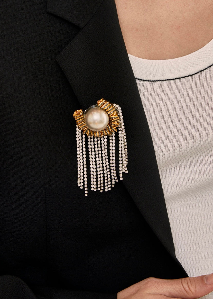 SPILLA CON FRANGE E PERLA ORO/ARGENTO