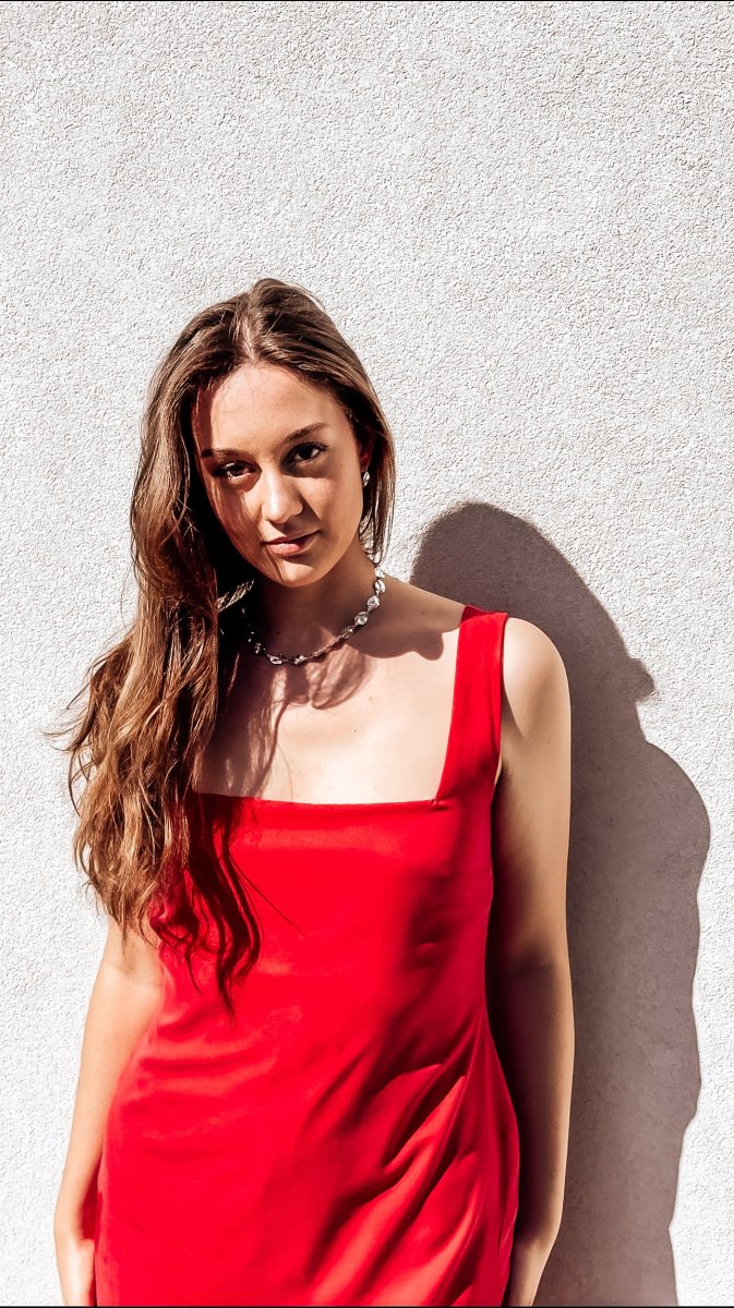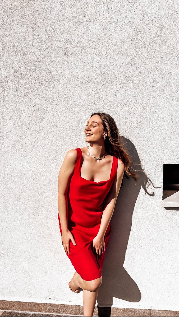 EDIZIONE LIMITATA: solo 10 disponibili Abito da giorno a tubino rosso con spacco posteriore e scollo quadrato senza maniche, confezionato su misura. Ogni abito è realizzato al momento dell’ordine per creare un pezzo unico e speciale. Questo fa sì che il numero di capi che possiamo produrre è limitato e richiederà da 1-4 mesi in […]
