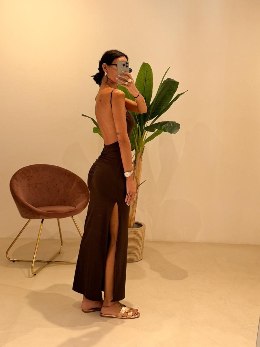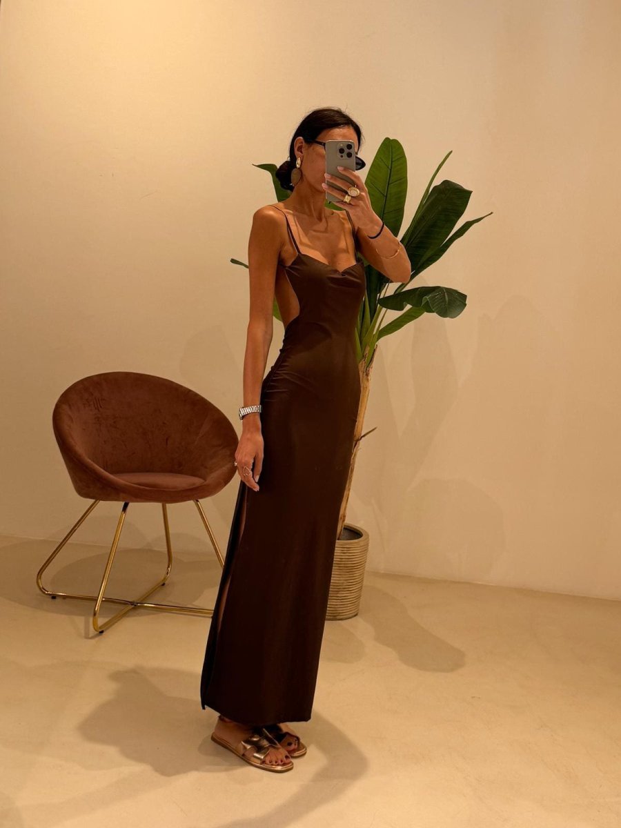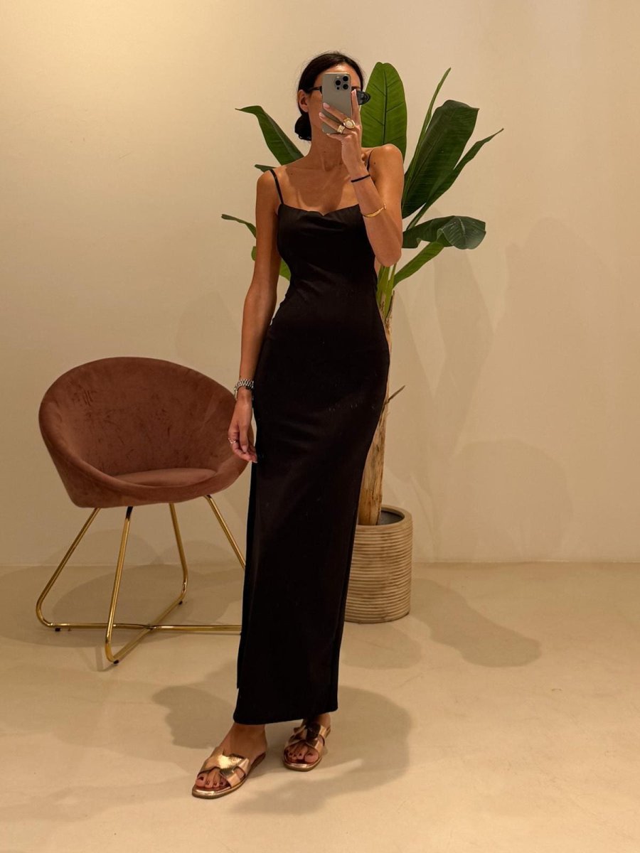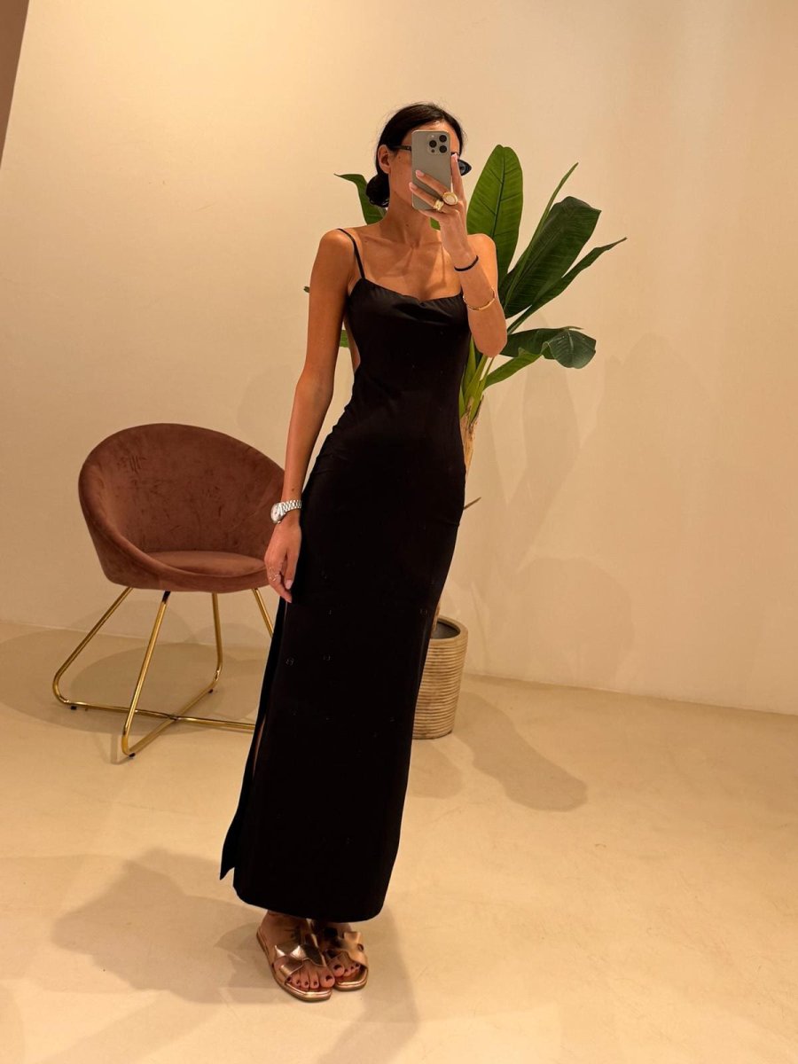 vestito aderente con spalline regolabili scollo sulla schiena e coppette preformate composizione :poliestere e elastan sofia h 1,73cm