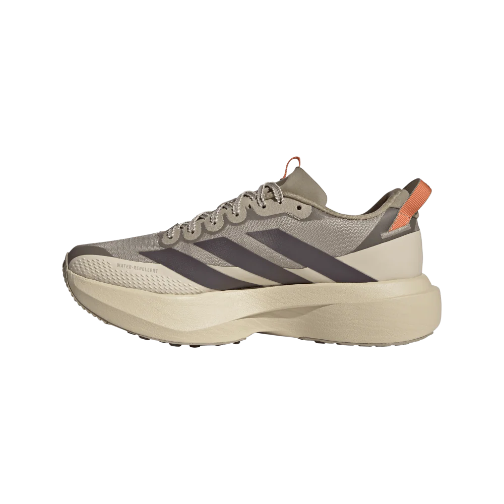 Queste scarpe dalla calzata regolare sono realizzate in tessuto a rete ripstop e dotate di parafango che garantisce idrorepellenza e protezione dagli agenti atmosferici, mentre l’esclusivo sistema ADIZERO sling launch offre un ulteriore sostegno al tallone.
