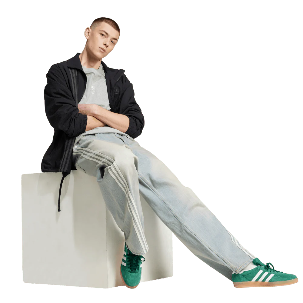 L’estetica ampia con caviglie strette enfatizza la silhouette. Il denim effetto vintage aggiunge profondità e riflette il carattere unico dei capi consumati dal tempo. Le 3 strisce lungo i lati e il logo del Trifoglio in rilievo completano il look.