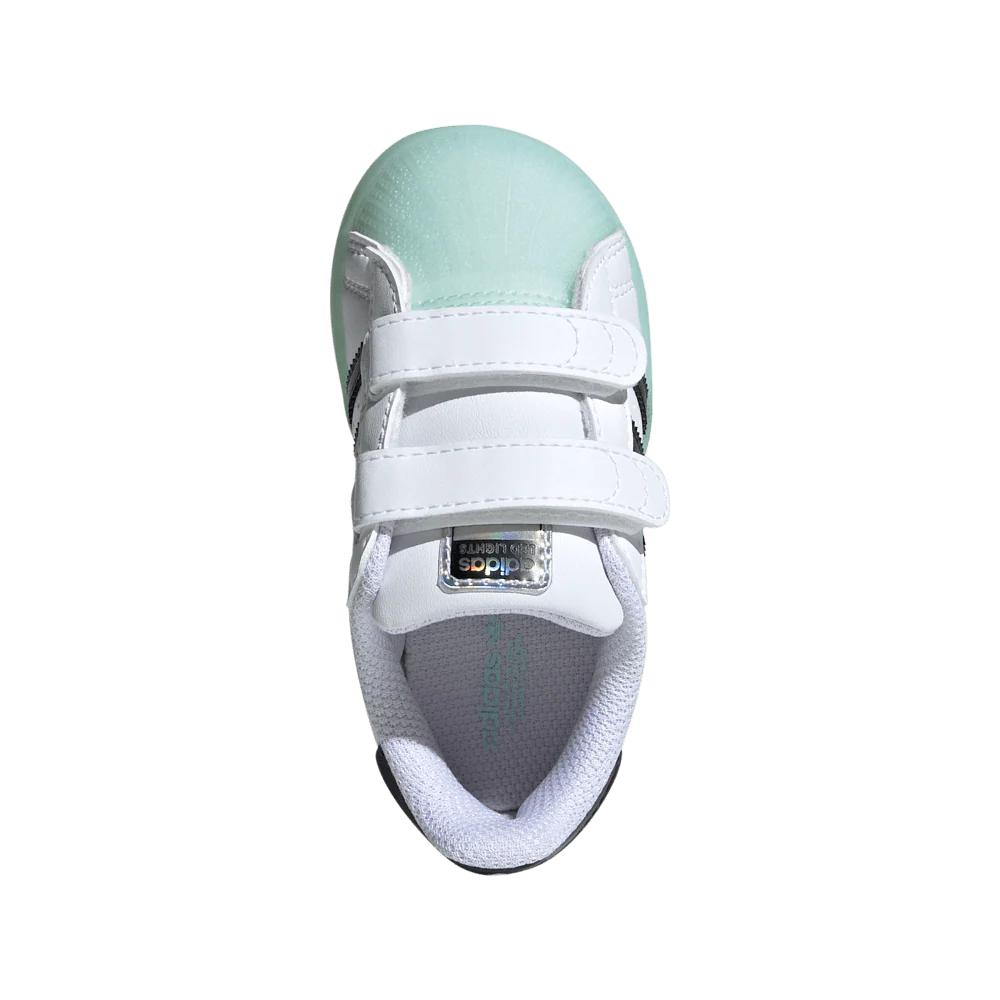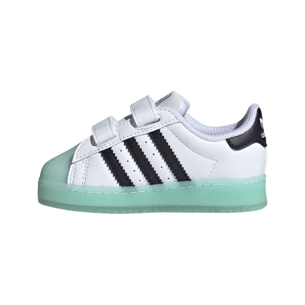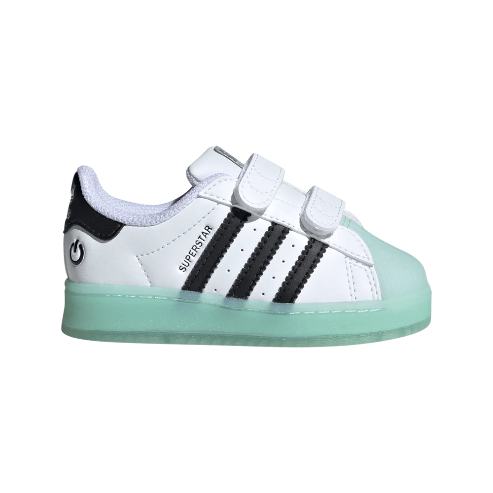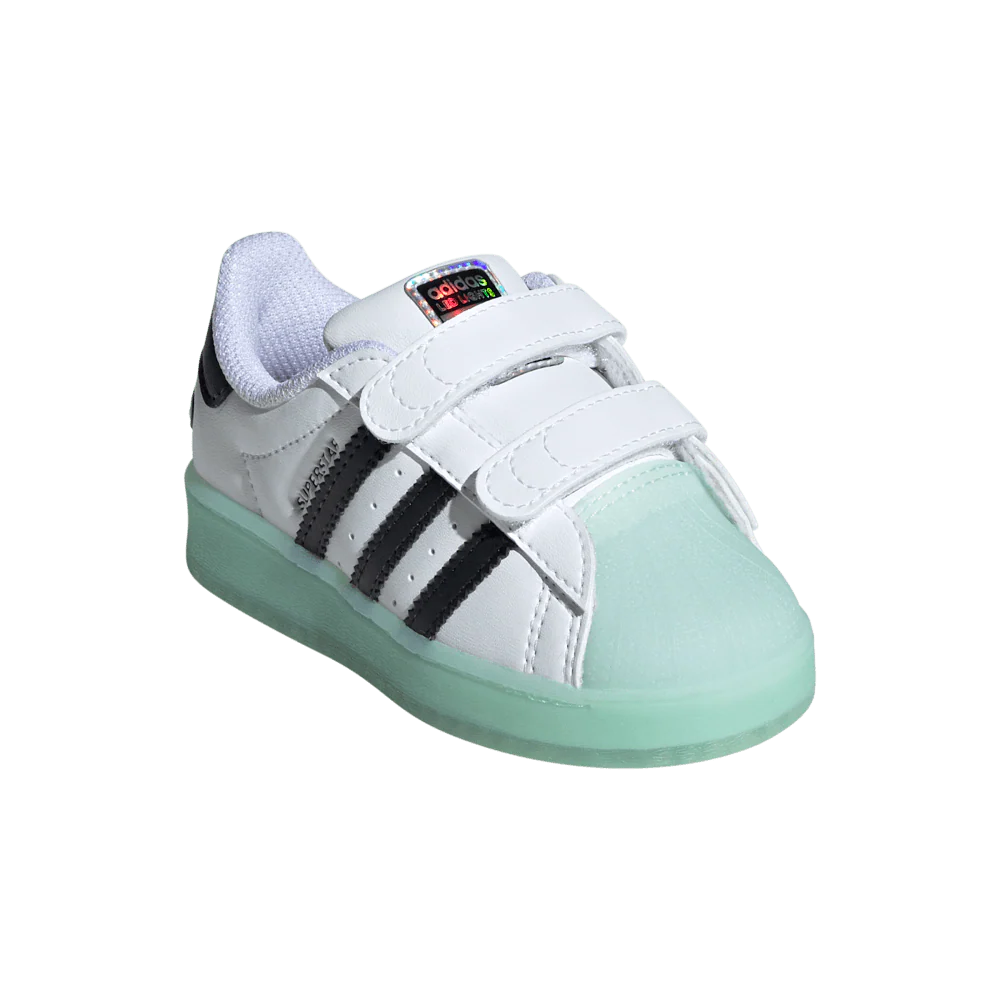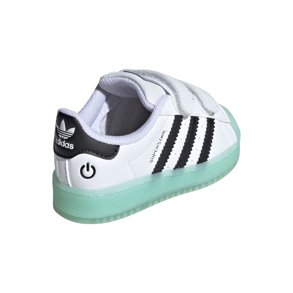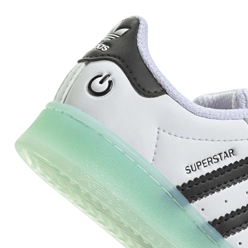 Queste adidas Superstar in versione infant sono pronte a illuminare i loro primi passi. Grazie alle luci LED integrate nella suola, queste sneaker aggiungono un tocco innovativo a un amatissimo modello adidas. Le chiusure a strappo consentono di infilarle e sfilarle rapidamente, mentre la soletta interna assicura grande morbidezza. Grazie al pratico pulsante on/off, è facile scegliere quando illuminare la giornata dei piccoli esploratori.