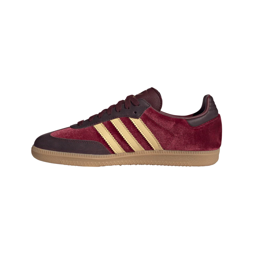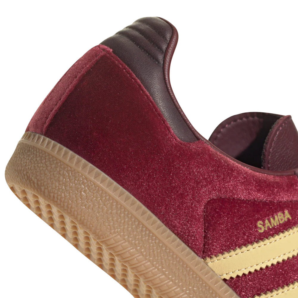 Nate sul campo da calcio e ora un’icona dello street-style, le scarpe adidas Samba sono un vero e proprio simbolo di versatilità. Questa versione chic delle leggendarie scarpe è realizzata con una lussuosa tomaia in velluto con dettagli in pelle liscia. I colori sono stati scelti con cura per creare un impatto discreto ma deciso. Gli elementi esclusivi includono l’iconica punta a T, le 3 strisce seghettate e la suola in gomma naturale. Indossa queste scarpe con qualsiasi articolo nel tuo armadio.