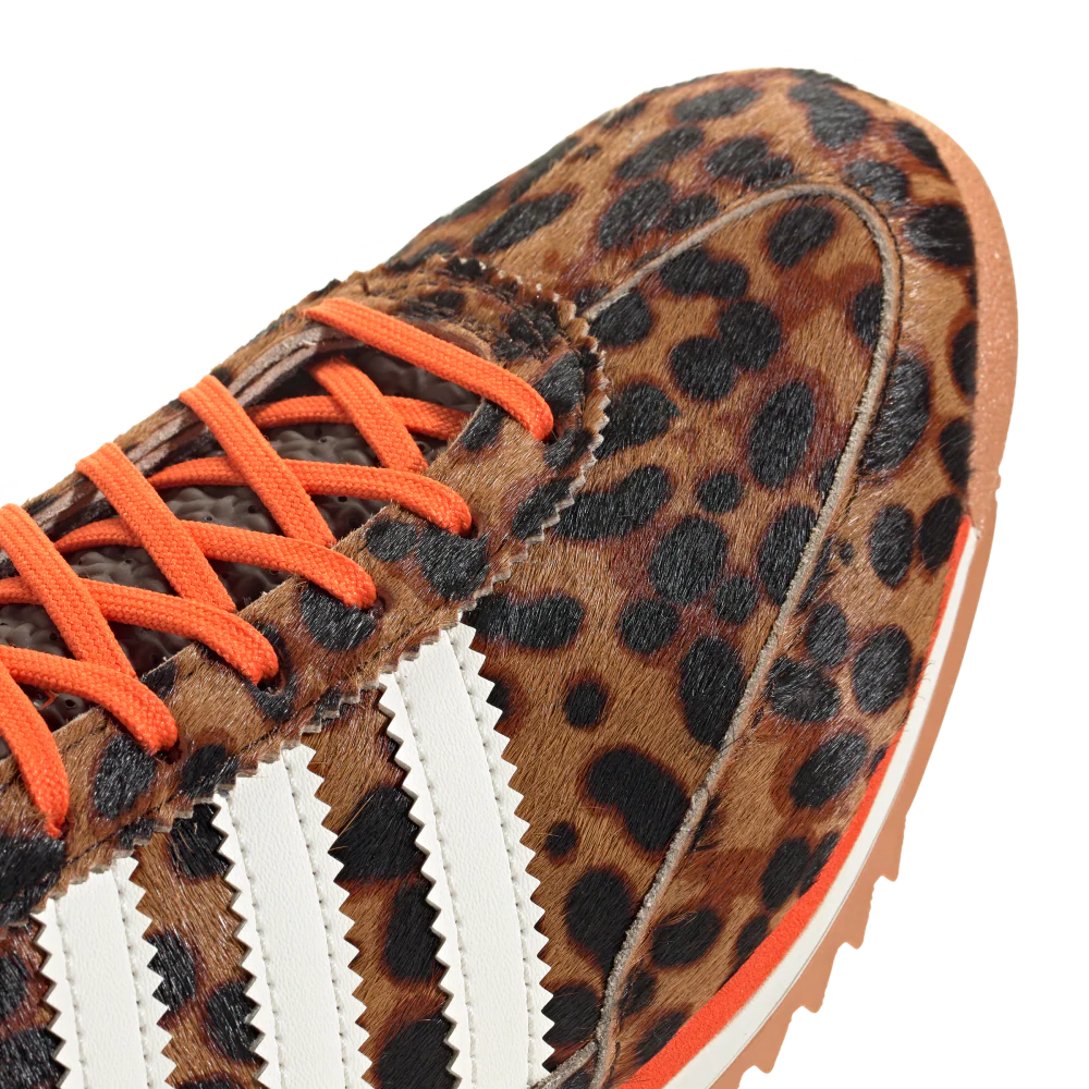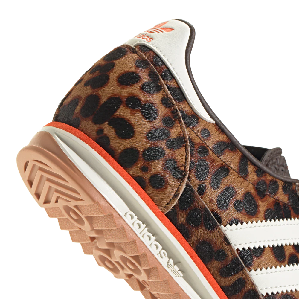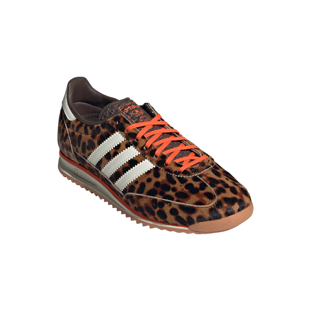 Dopo il loro debutto negli anni ’70, le adidas SL 72 OG hanno creato scompiglio nel mondo del running divenendo le prime scarpe con una tomaia in nylon. Questa versione tramanda la leggenda con una tomaia caratterizzata da una stampa leopardata allover in cavallino. La linguetta testurizzata, l’intersuola a profilo basso e la suola in gomma rivisitano una silhouette d’archivio in chiave contemporanea.
