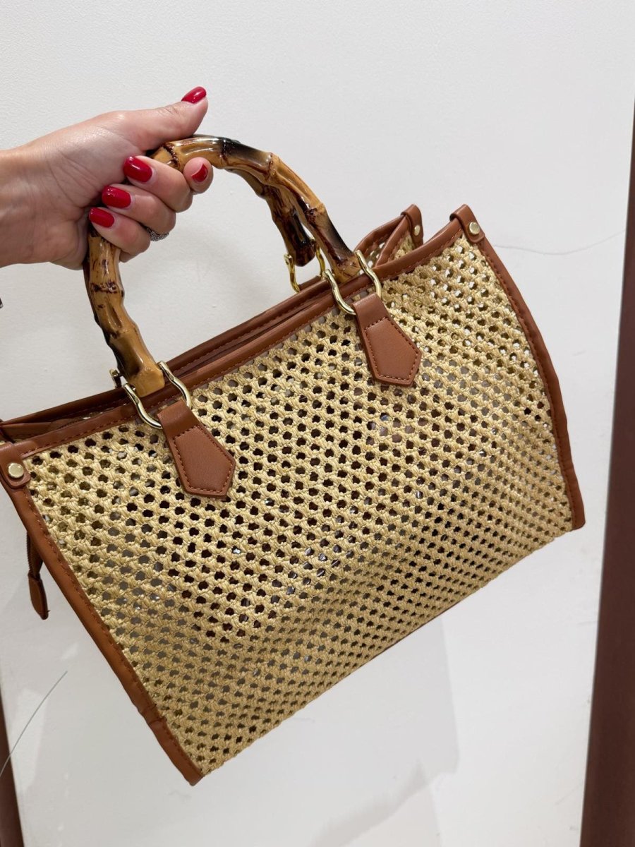 Manici in bambu tracolla regolabile e removibile pochette all’ interno chiusura con zip