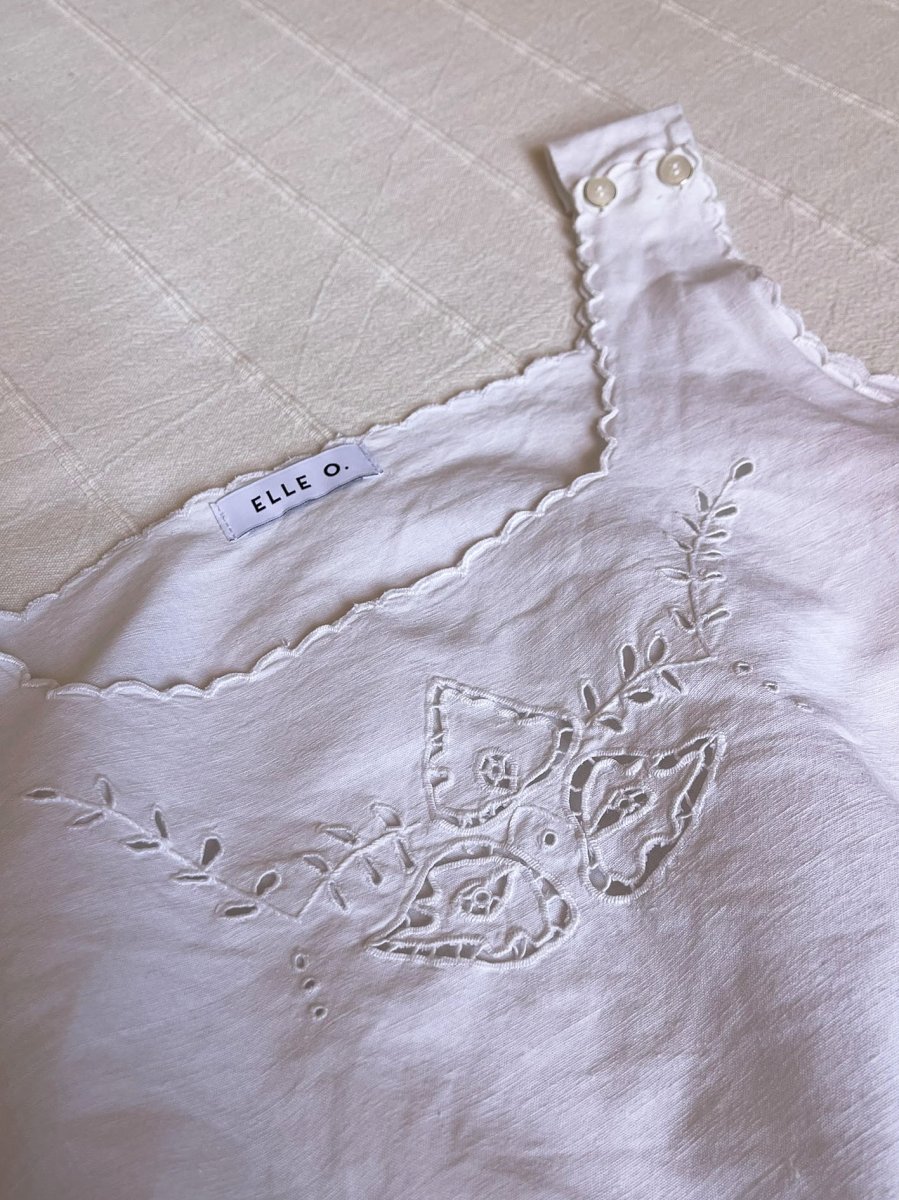 - Ricamo centrale e smerlato lungo i bordi