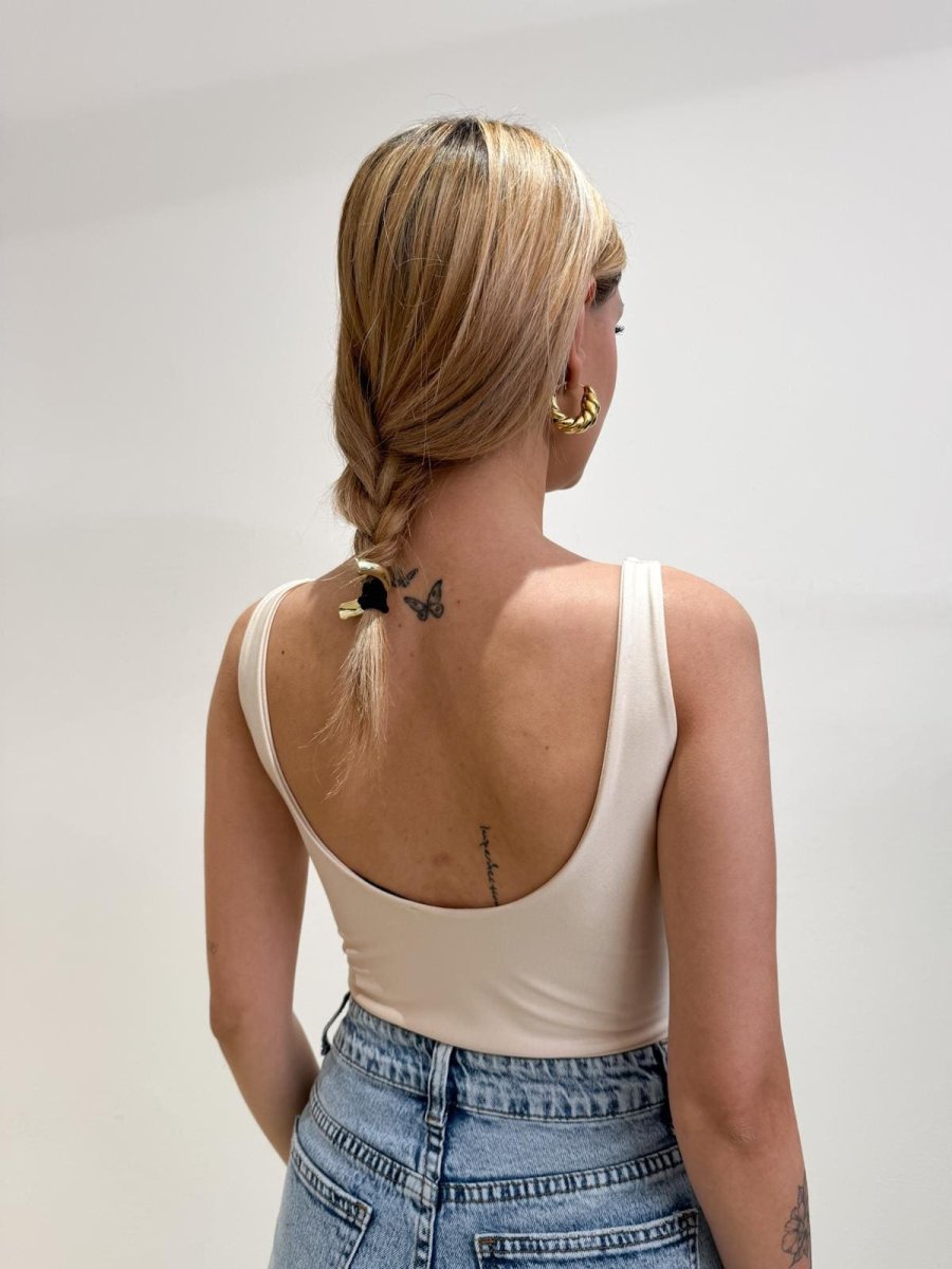 Body in Lycra effetto Modellante Grappette regolabili sul fondo TAGLIA UNICA, VESTE FINO ALLA M Spallina Larga