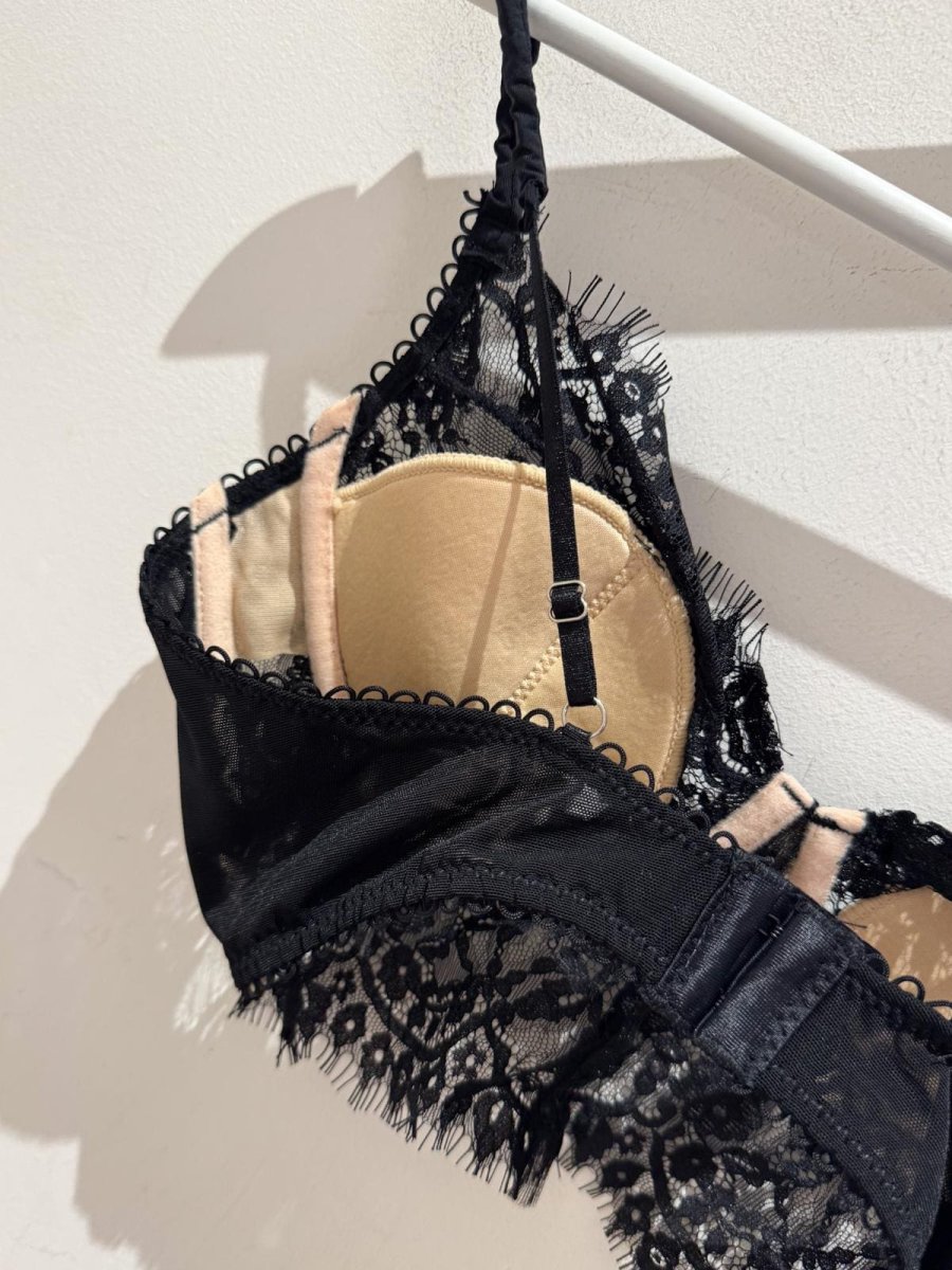 Bralette di pizzo coppetta incorporata spallino regolabile e arricciato veste fino ad una terza
