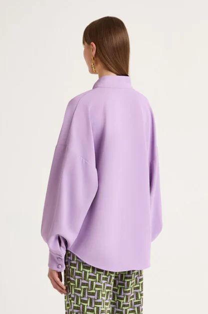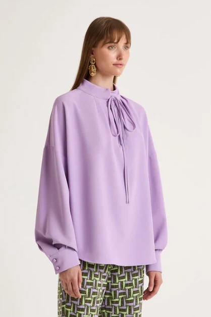 Eleganza minimalista in pura forma. Questa camicia in cady unito incarna la semplicità contemporanea con un’apertura asimmetrica che cattura lo sguardo e un collo alto che definisce il profilo. Le maniche ampie e la giromanica generosa regalano una silhouette over che privilegia il movimento e la libertà. Perfetta per chi non sceglie tra comfort e stile, è la risposta a chi desidera un capo versatile che passa senza sforzo dalla giornata all’aperitivo. Un pezzo essenziale che trasforma ogni outfit in una dichiarazione di gusto consapevole.