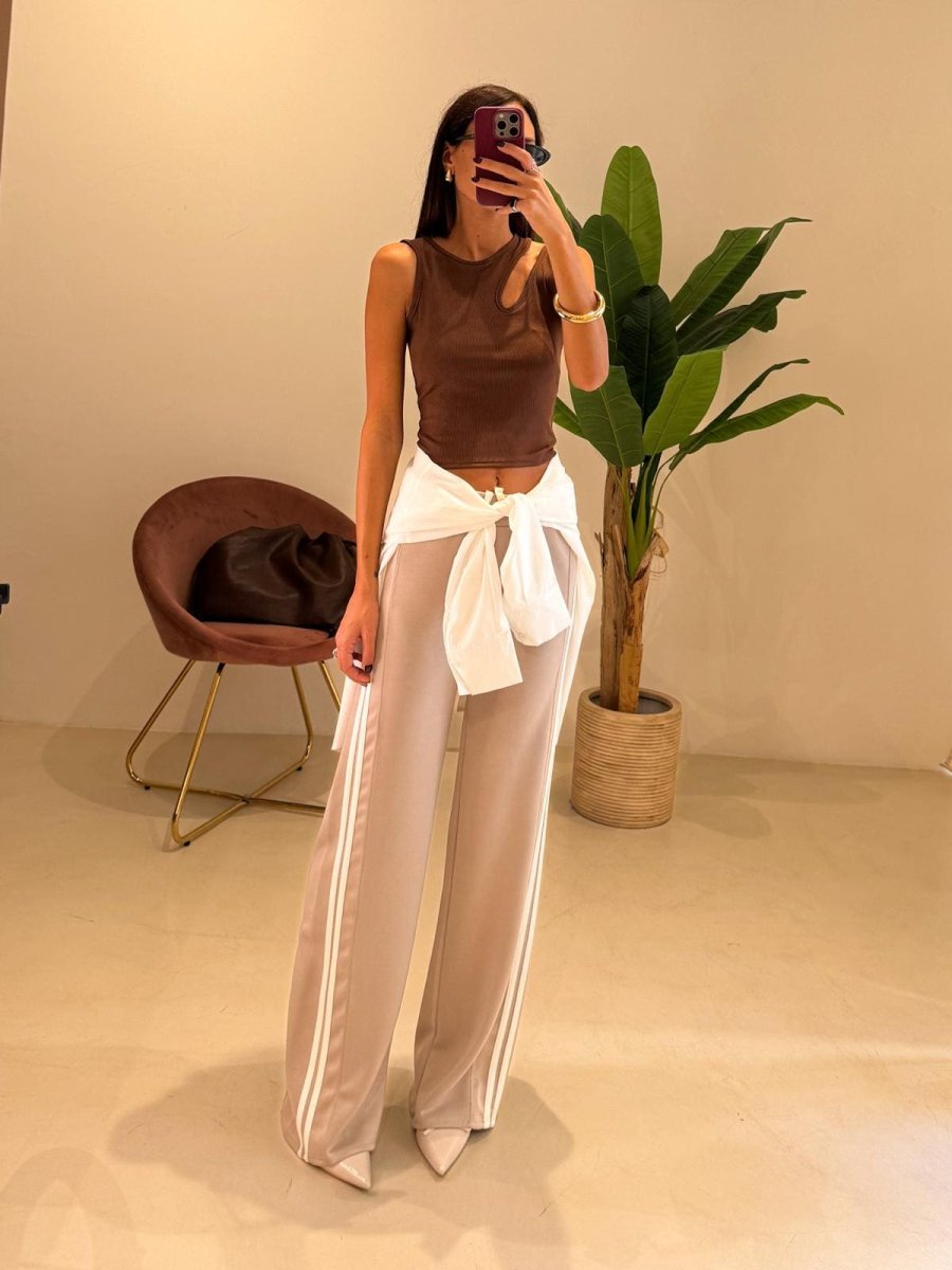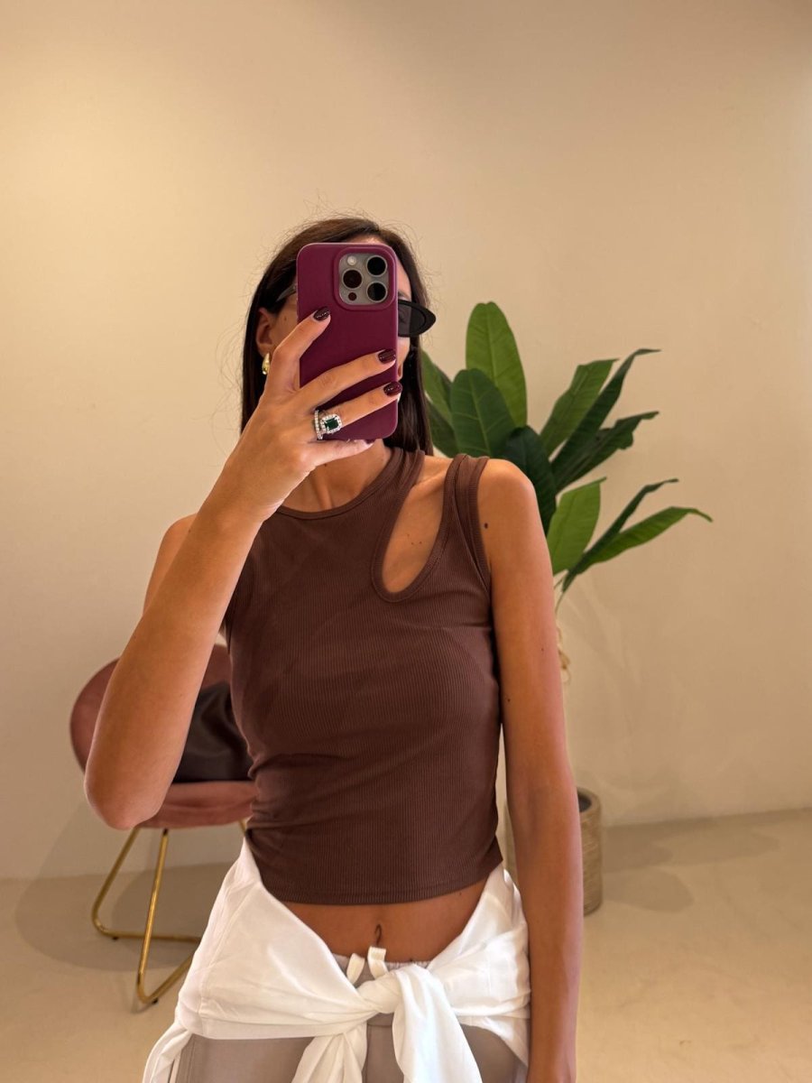 Canotta con dettaglio cut out modello costina fina tessuto elasticizzato