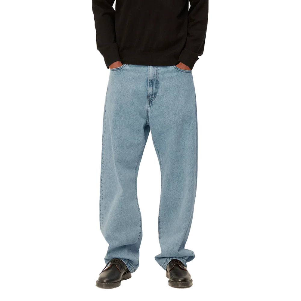 I Landon Pant sono realizzati in pesante denim sottoposto a lavaggio con pietre abrasive per un aspetto vissuto. I pantaloni sono caratterizzati dalle classiche cinque tasche con impuntura a contrasto ed etichetta quadrata in tessuto sulla tasca posteriore destra. Sono di taglio più ampio nella parte superiore della gamba e diventano affusolati sotto il ginocchio.