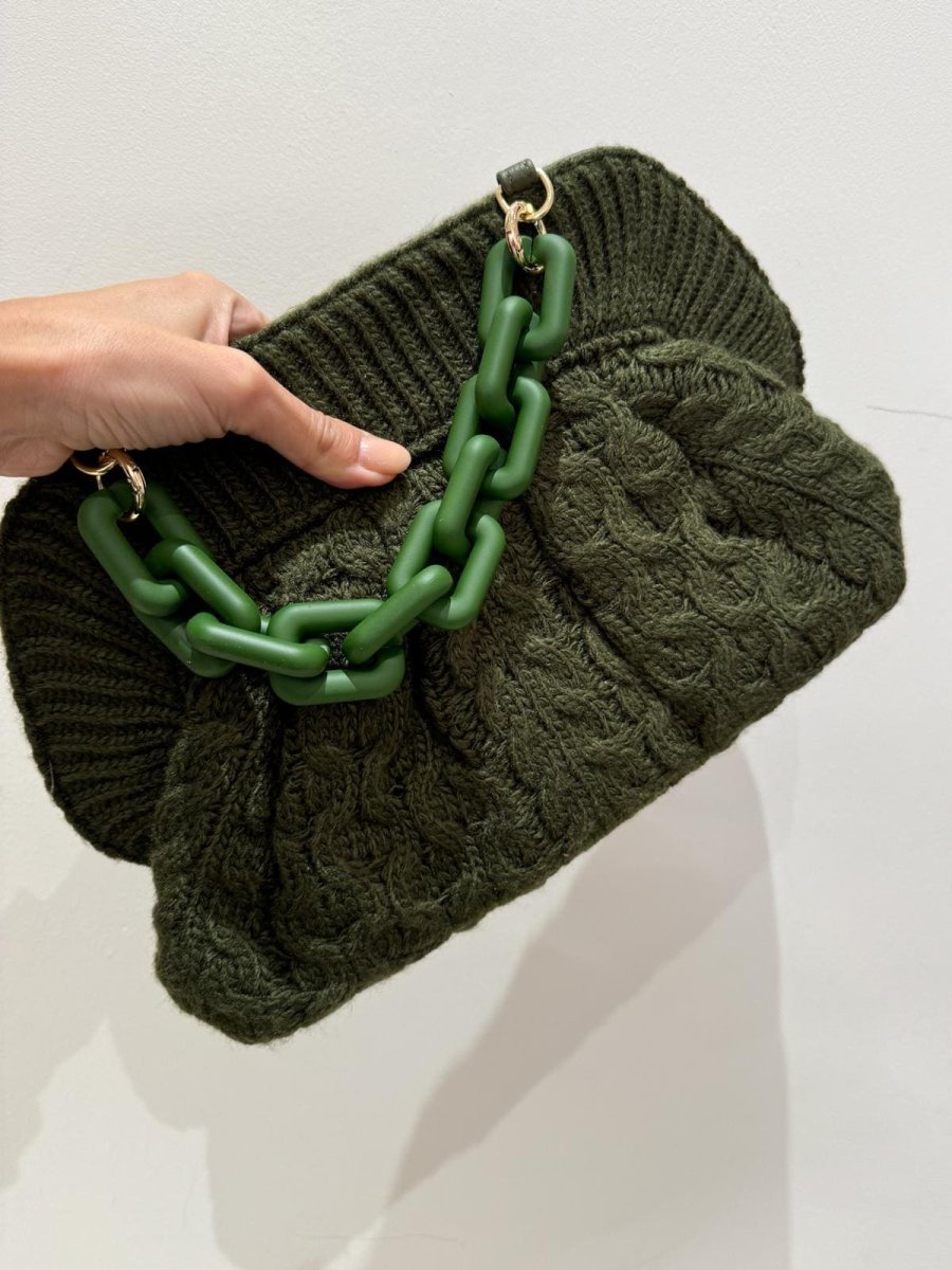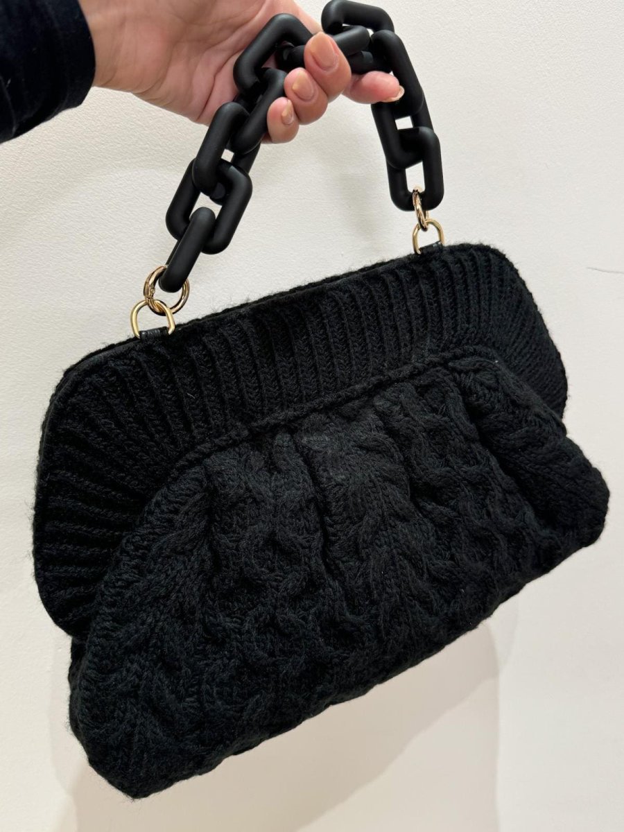 Clutch in lana modello apri/chiudi con tracolla a mano a catena tracolla lunga, entramne removibili dimensioni 31x 20