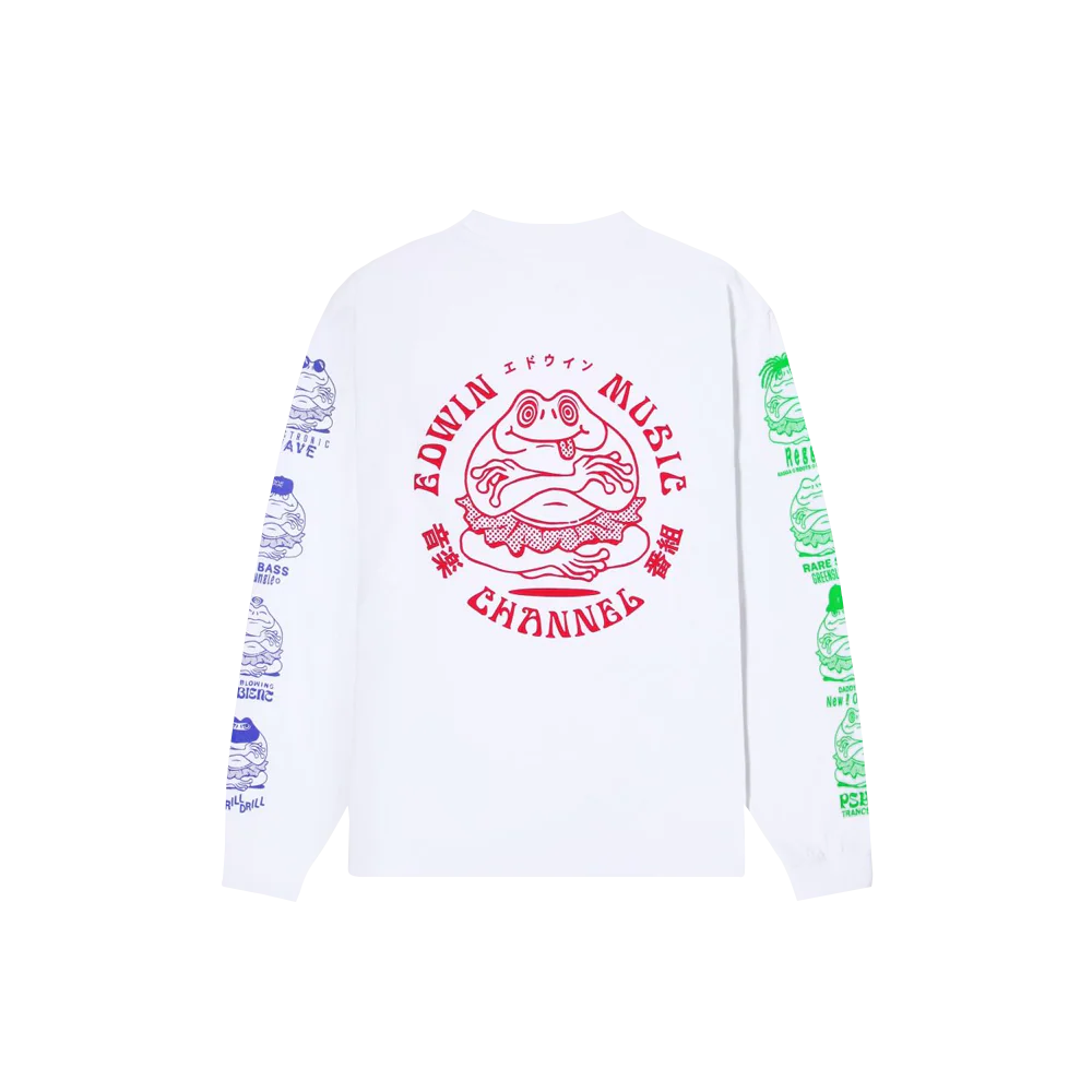 La maglietta EDWIN Music Channel LS รจ una maglietta oversize con maniche lunghe realizzata al 100% in cotone.