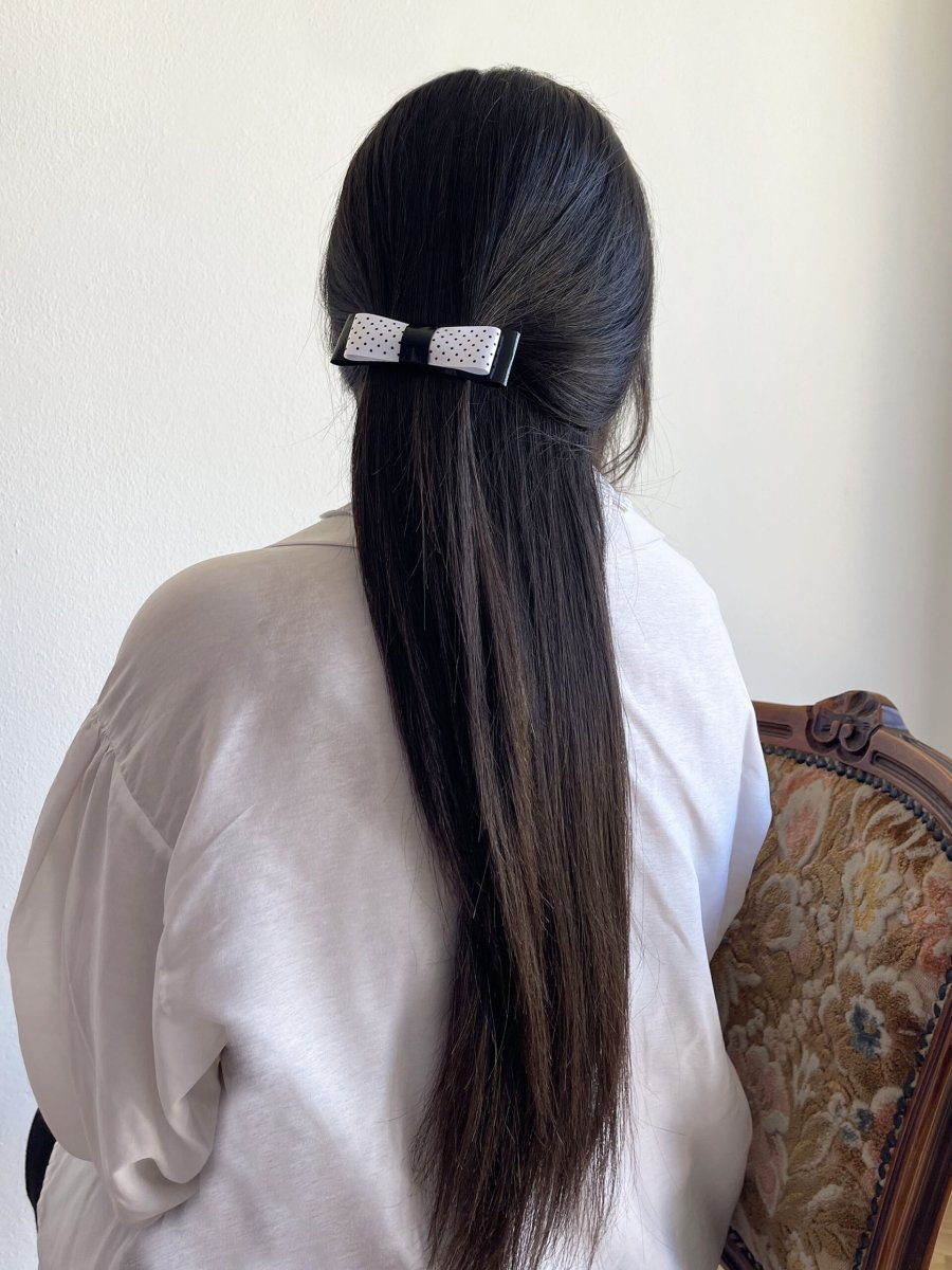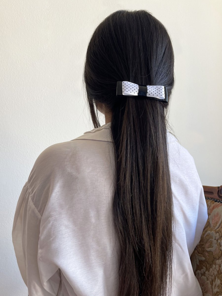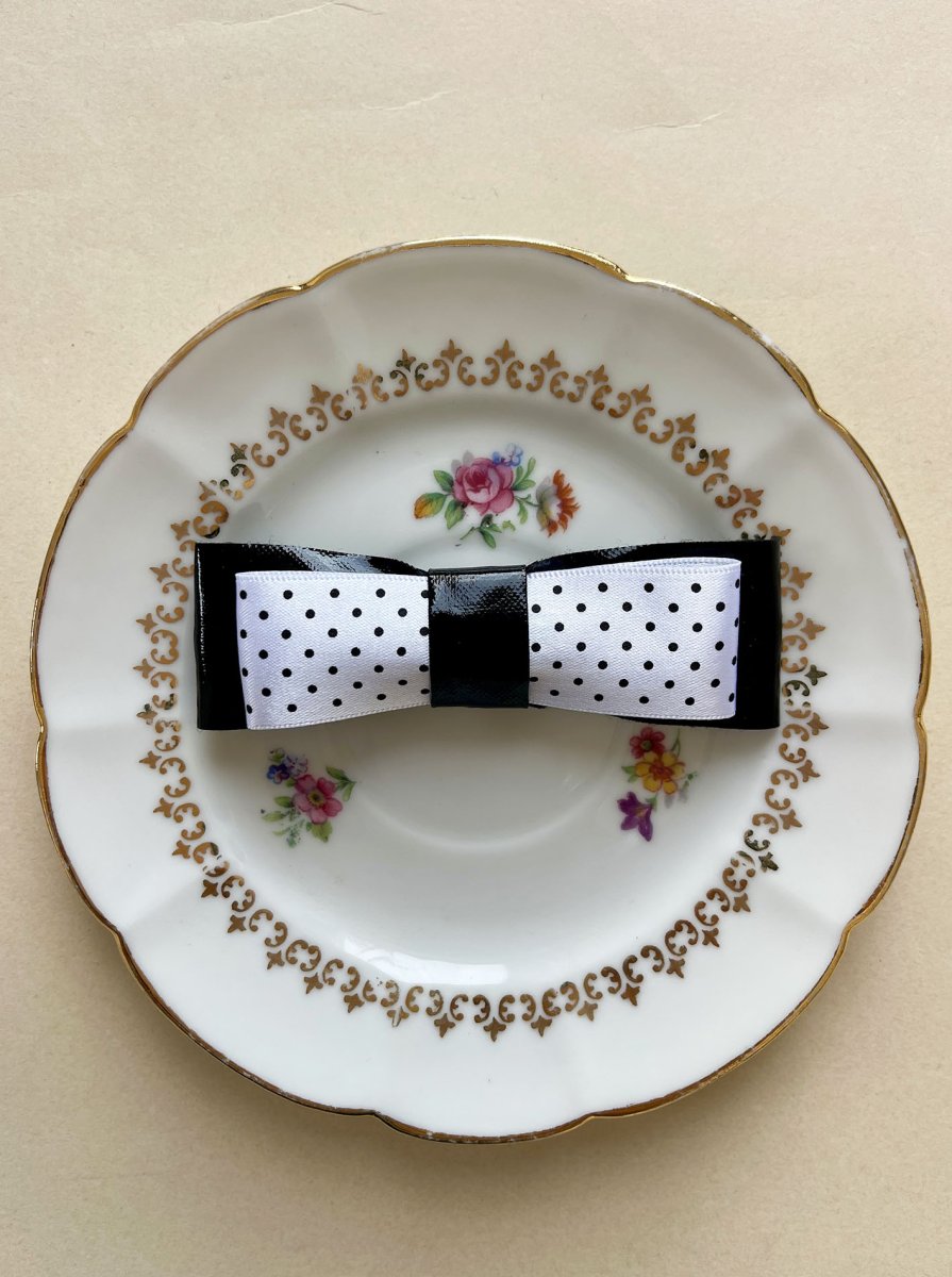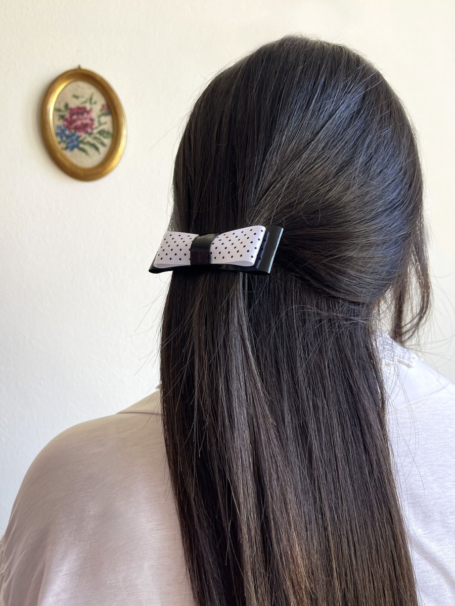 Ispirazione anni 50 per questo fiocchetto in black & white, con vernice e pois 🖤