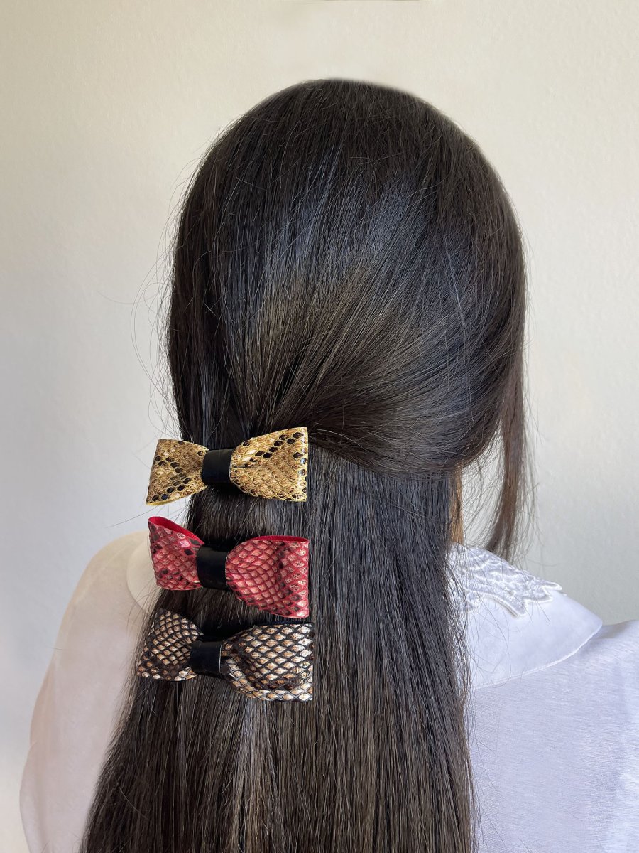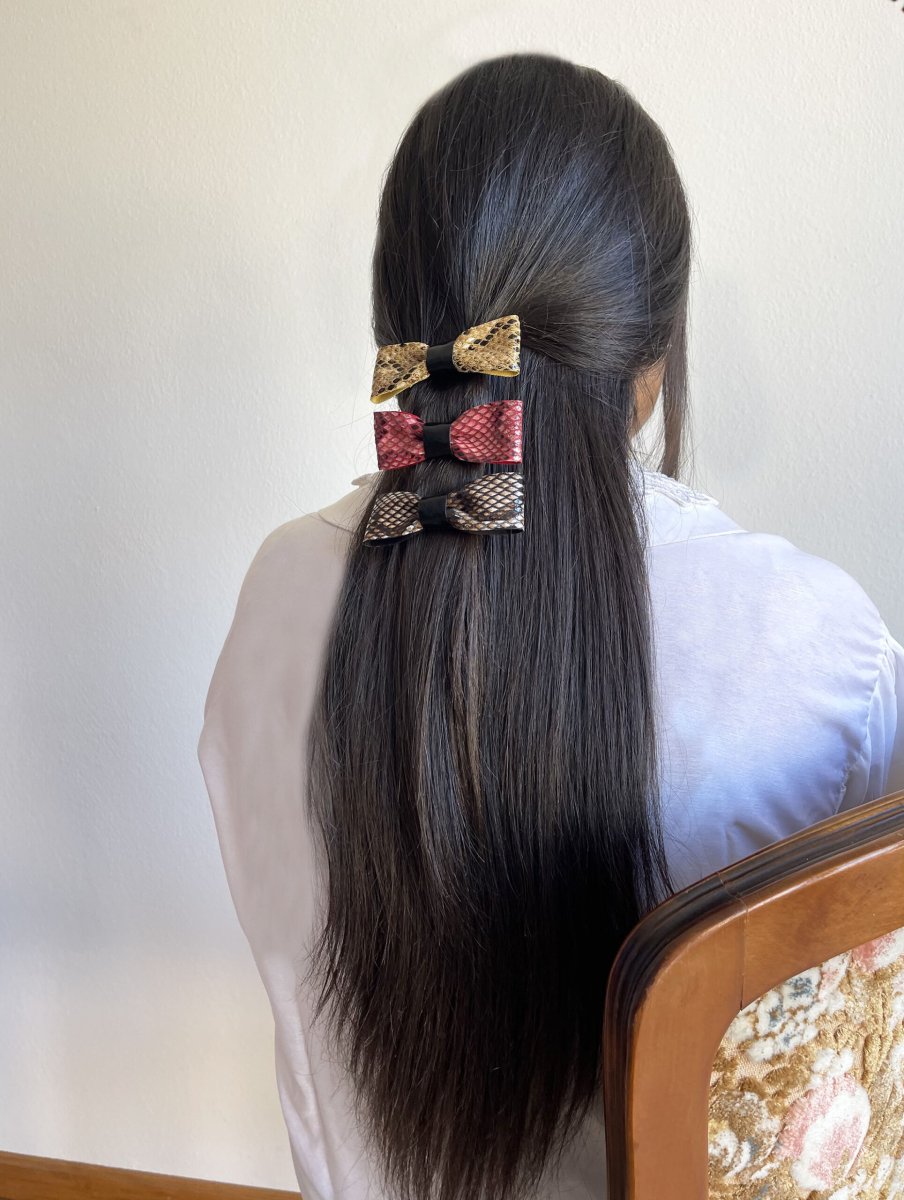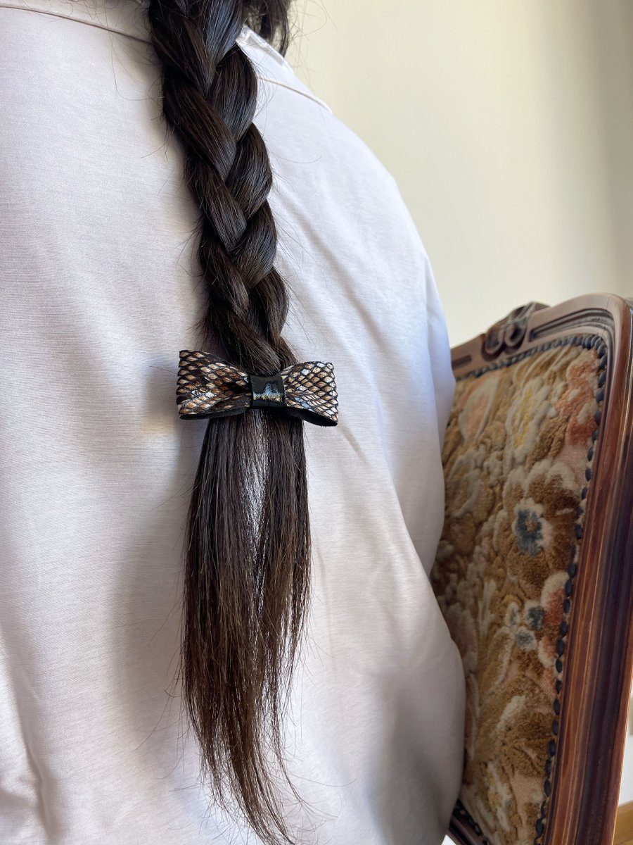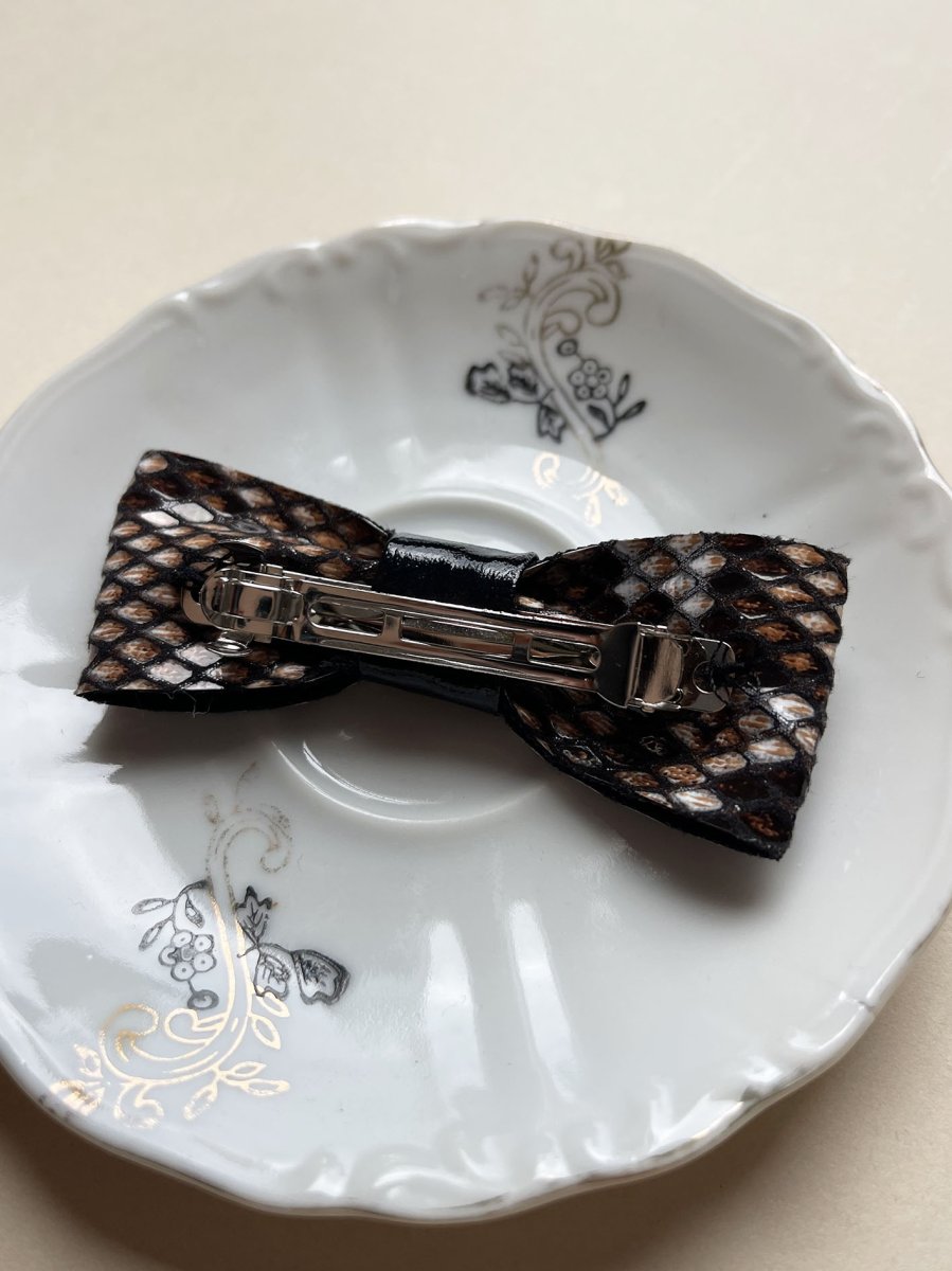 - Fiocchetto per capelli in ecopelle stampa pitone + vernice nera al centro