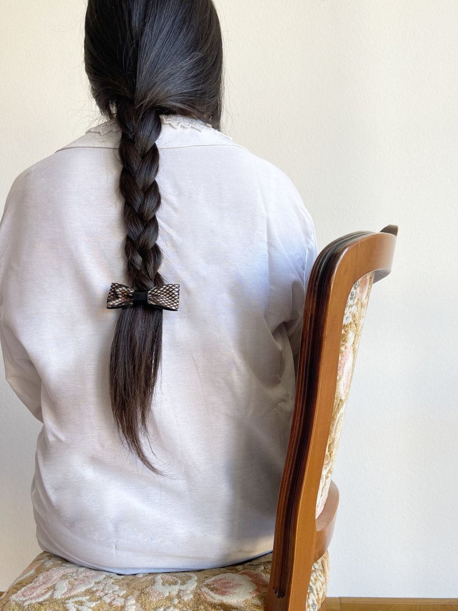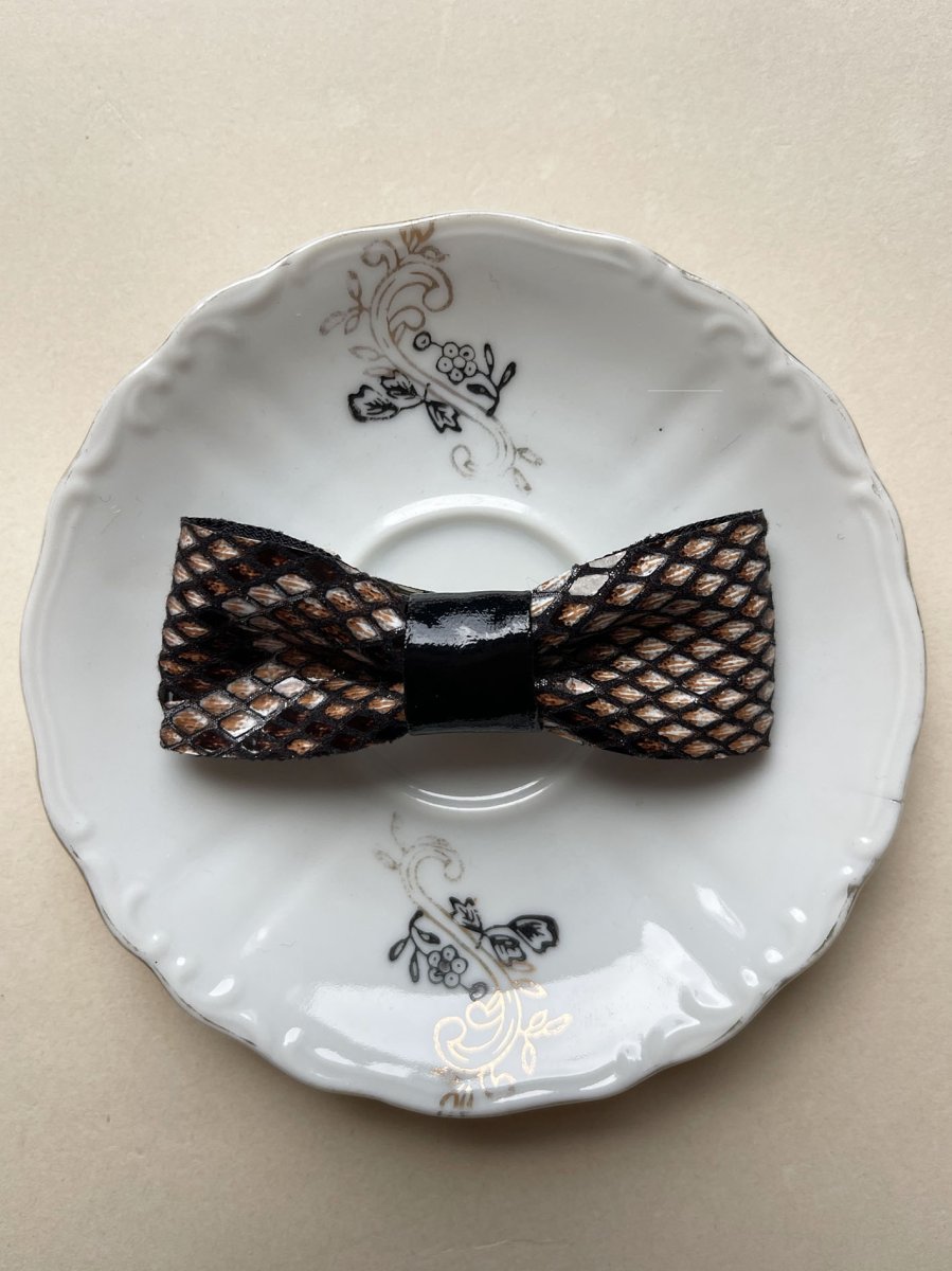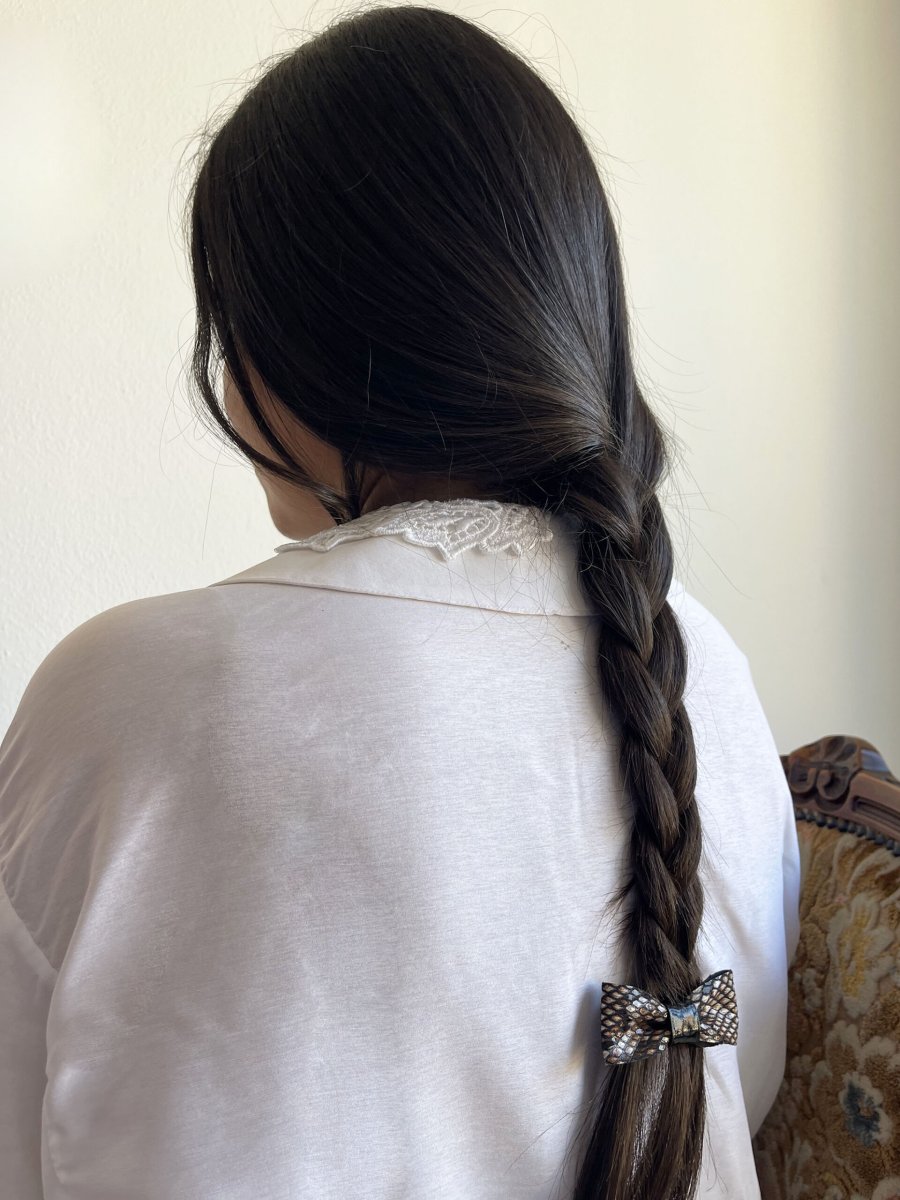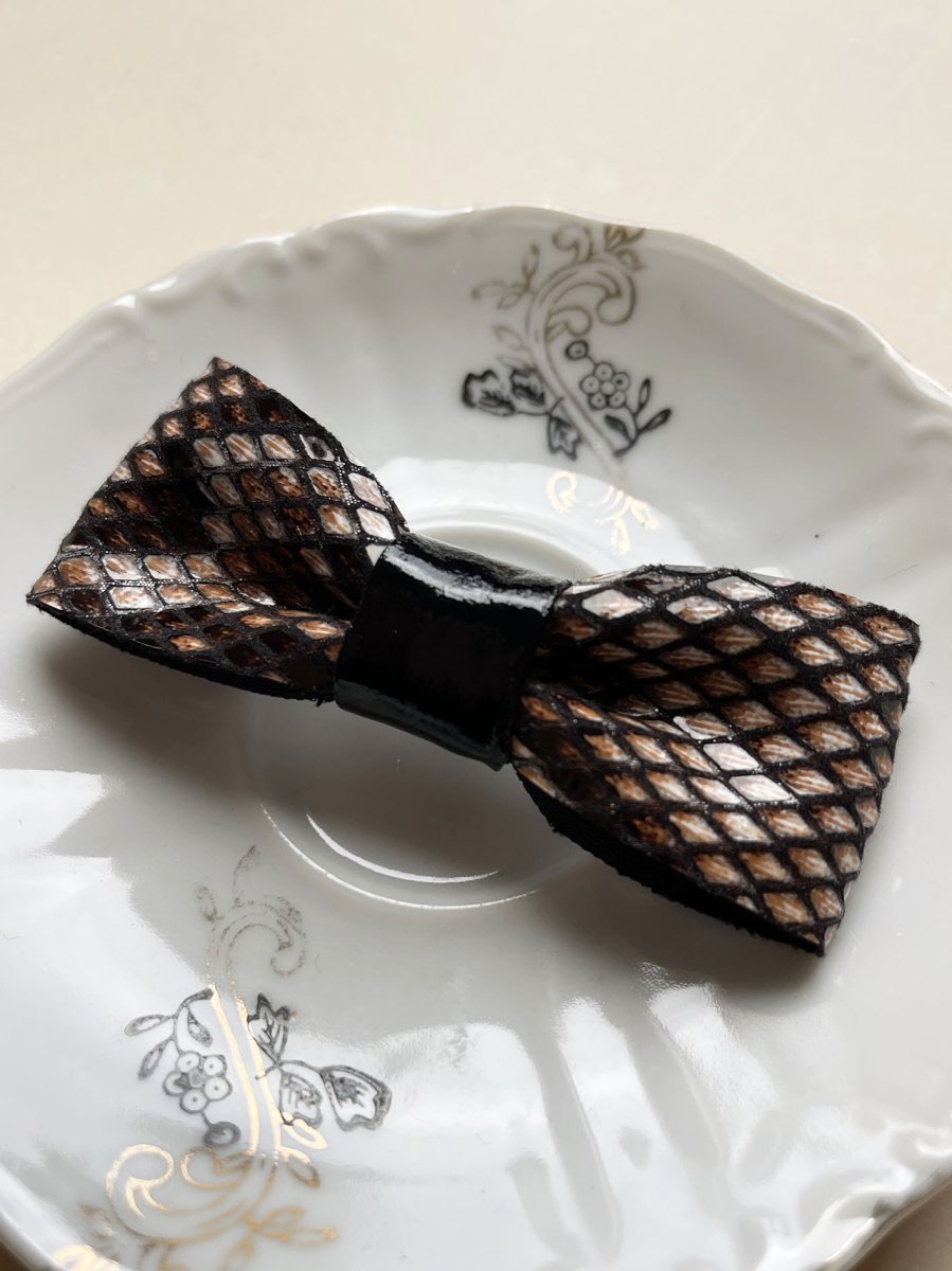 - Fiocchetto per capelli in ecopelle stampa pitone + vernice nera al centro