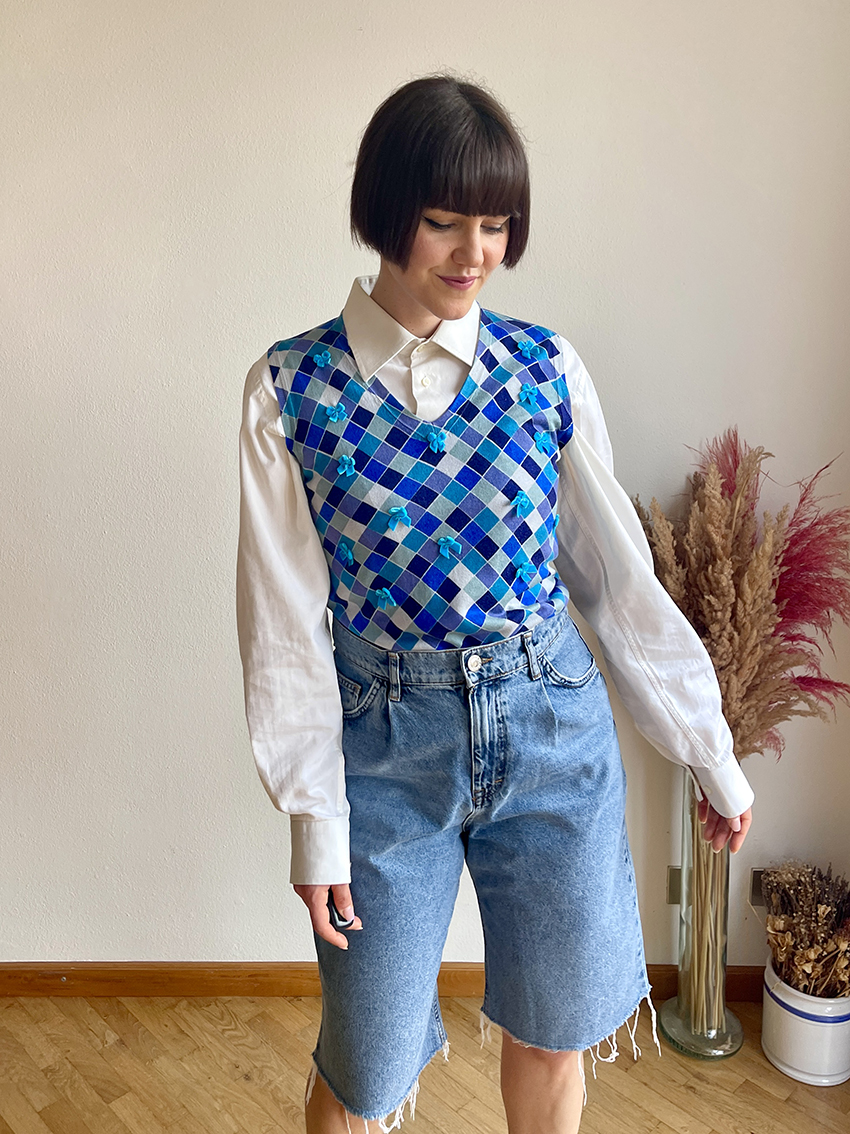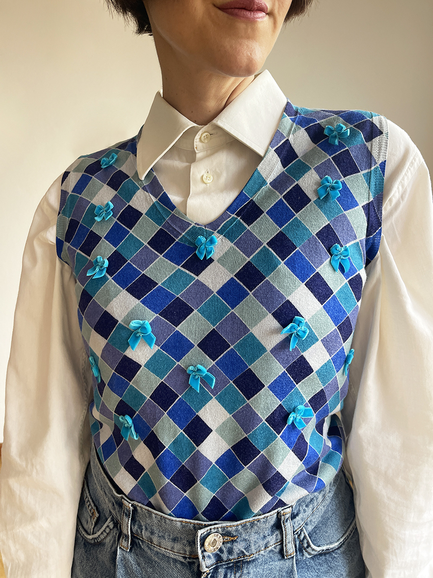 Un tuffo tra le mille sfumature di blu e fiocchetti ricamati: ecco Into The Blue Bows Gilet! 💙🎀🩵