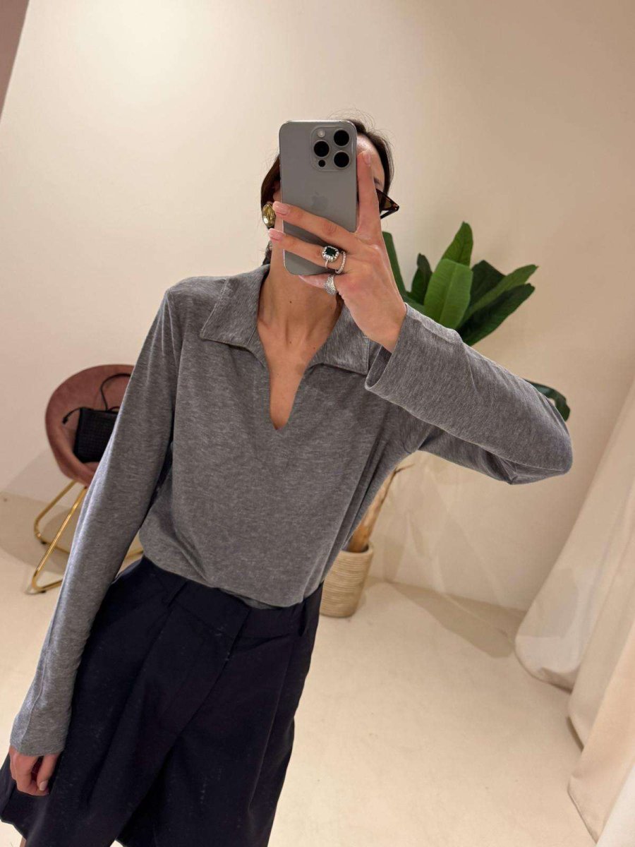 Maglioncino polo grigio Composizione: 78% lyocel 20% lana 2% elastan