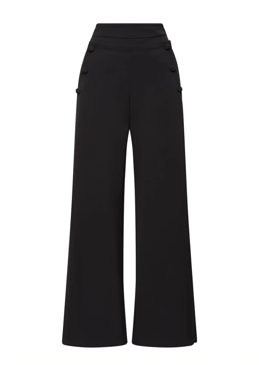 Questo pantalone Cady offre un tocco Navy dal fascino rétro, grazie alla vita alta con bottoni sui fianchi e la gamba ampia. Un’icona di stile femminile che unisce suggestioni vintage e linee contemporanee per un look unico e perfetto per ogni occasione 💜