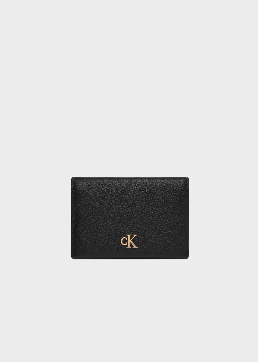 Portacarte con portamonete e logo in pelle