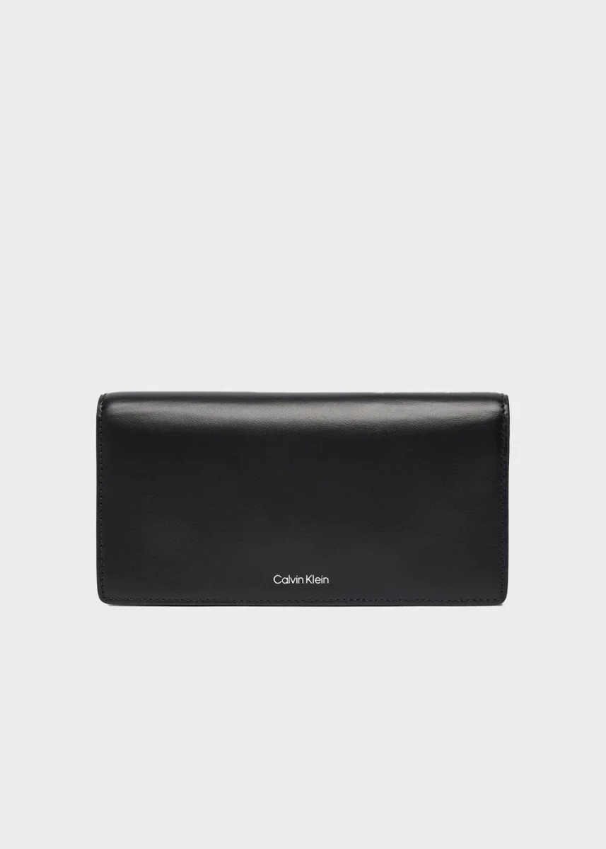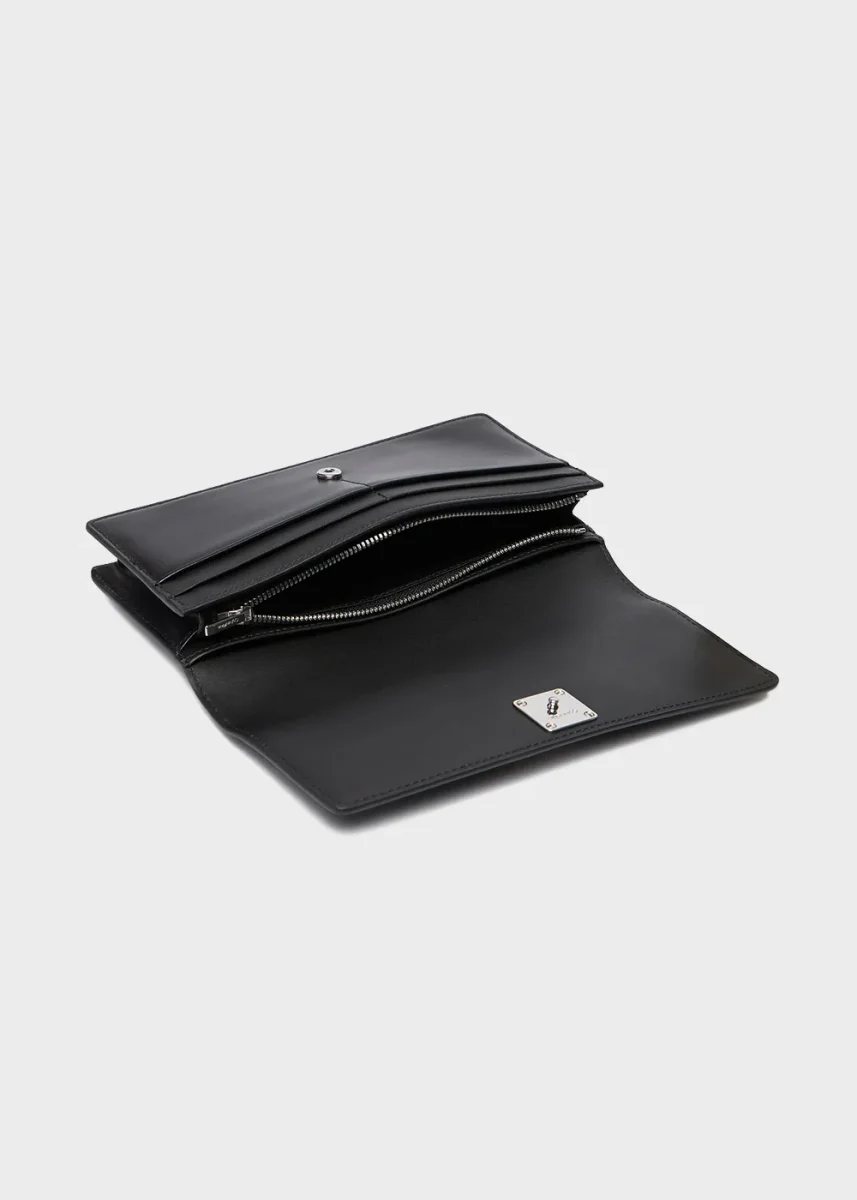 Portafoglio a libro in pelle con emblem logo monogramma e zip interna