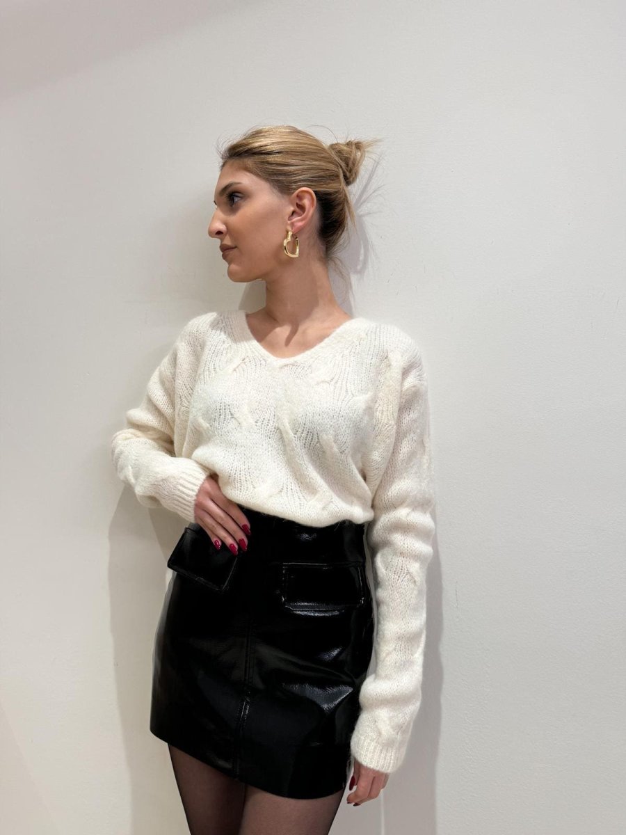 pull scollo a v taglia unica misto acrilico mohair elastan e poliamide