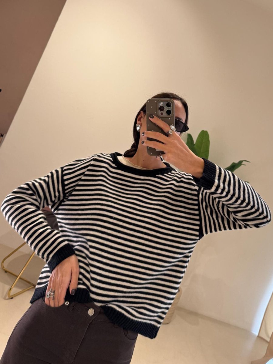 Pull riga scatolina Taglia unica Composizione: 55% acrilico 30%polyestere 15% lana