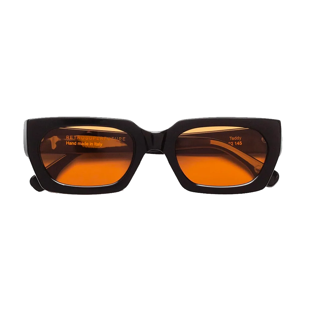 Teddy è una silhouette dal taglio netto e spigoloso. Una montatura ampia e decisa con una struttura in acetato spessa e audace, che abbina lo stile alla funzionalità. Questo modello si presenta con una montatura nera e lenti arancio.