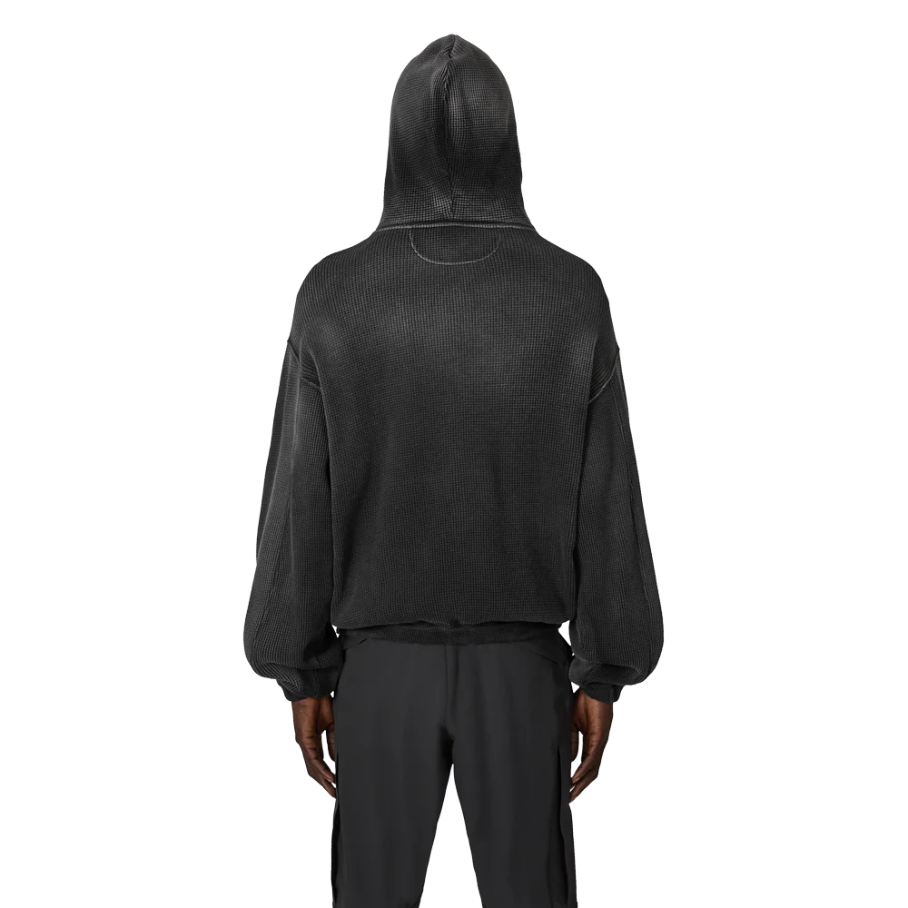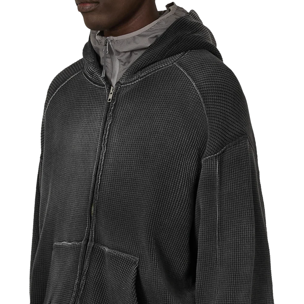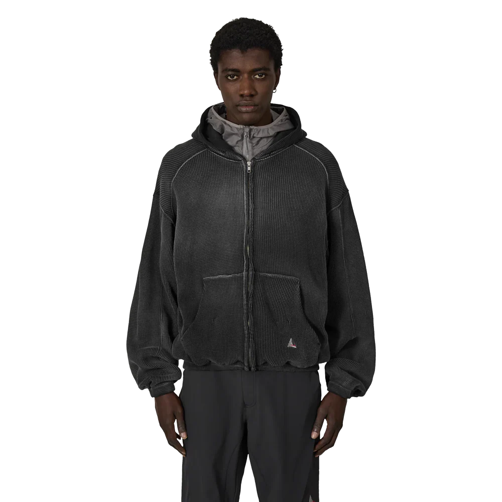 La felpa con cappuccio e zip Bee Sun Faded Waffle in colore nero è realizzata in jersey waffle pesante e slavato. Caratterizzata da una vestibilità squadrata per una silhouette rilassata, presenta una zip centrale sul davanti per facilitare la sovrapposizione di capi. I polsini e l’orlo elasticizzati garantiscono una vestibilità aderente, mentre il logo ROA ricamato sulla tasca frontale aggiunge un tocco di raffinatezza.