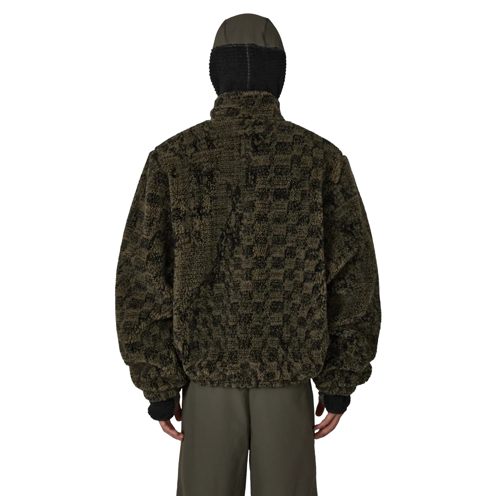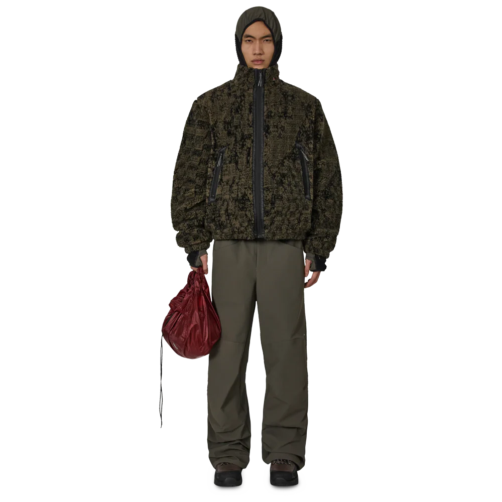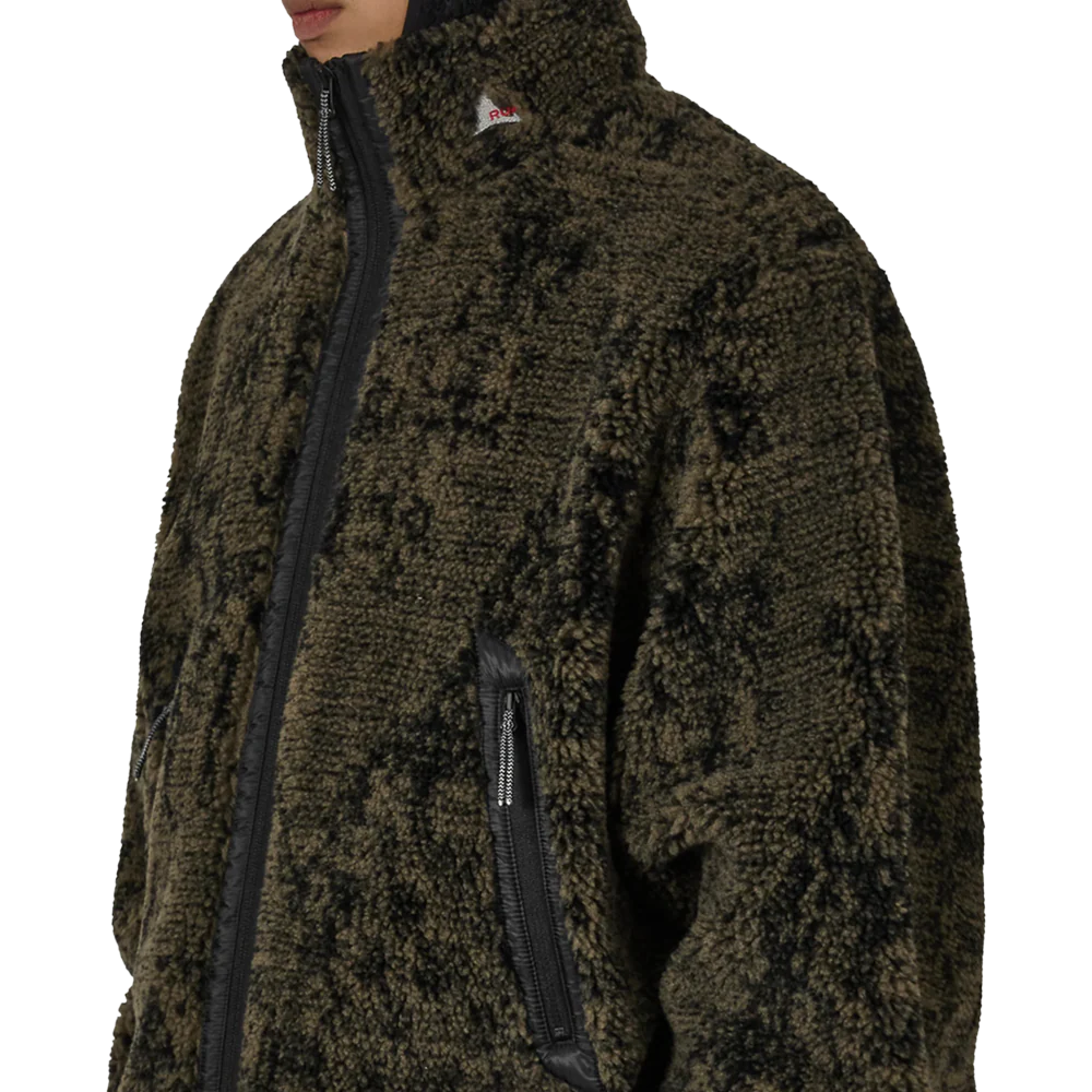 La giacca in pelliccia sintetica Ewe, interamente color oliva e nera, è realizzata in caldo tessuto felpato che offre eccezionale morbidezza e isolamento termico. Caratterizzata da una vestibilità oversize e squadrata, presenta un collo alto per una maggiore protezione dagli agenti atmosferici e orli e polsini elasticizzati per trattenere il calore. Le tasche frontali con cerniera offrono uno spazio sicuro e comodo dove riporre gli oggetti. Rifinita con logo ROA ricamato sul davanti.
