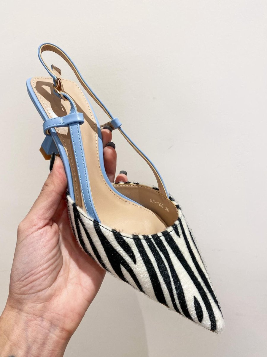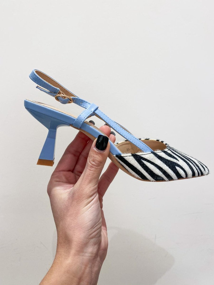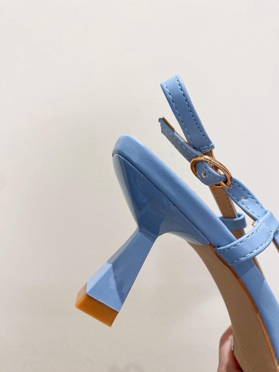 CALZATA REGOLARE TACCO A ROCCHETTO H 4 CM LACCETTO REGOLABILE INSERTI IN ECOPELLE COLOR CELESTE PASTELLO