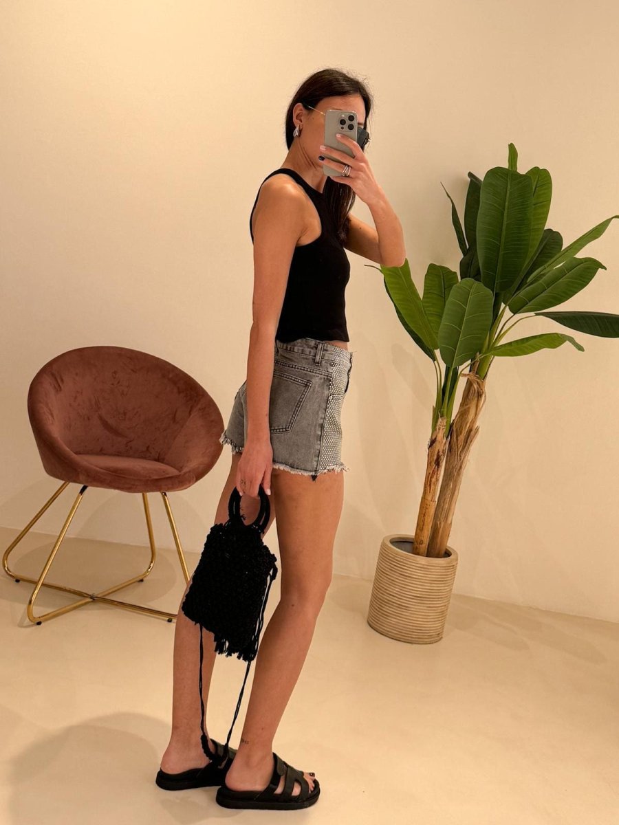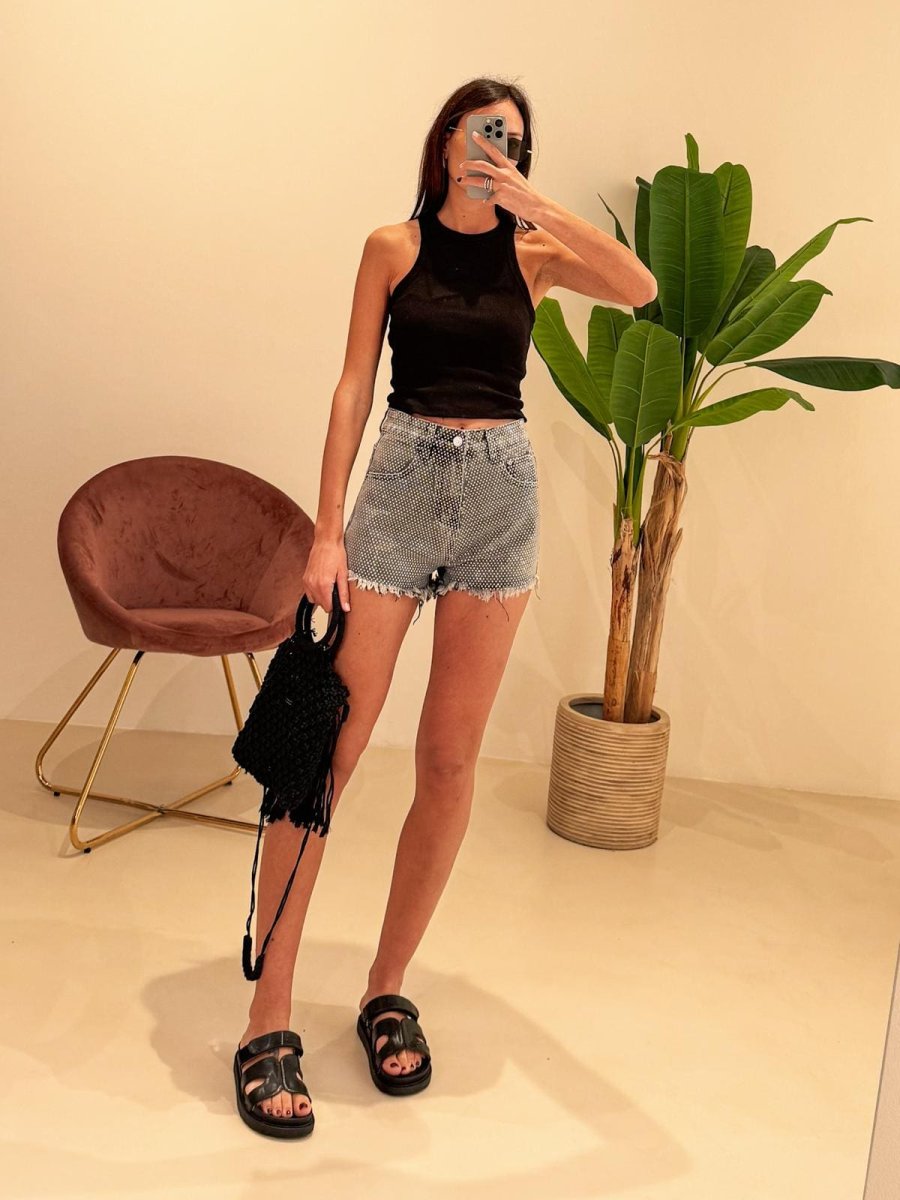 taglio vivo e sfrangiato in fondo misto cotone e poliestere chiusura cerniera e bottone tempestato di brillantini solo sul davanti