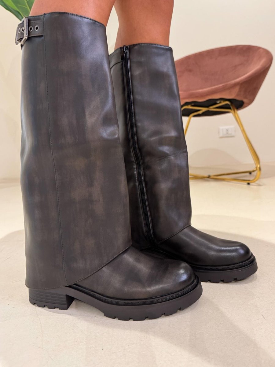 Stivale sotto al ginocchio Rovescia e fibbia Color canna di fucile Zip laterale Calzata regolare Altezza tacco 4 cm