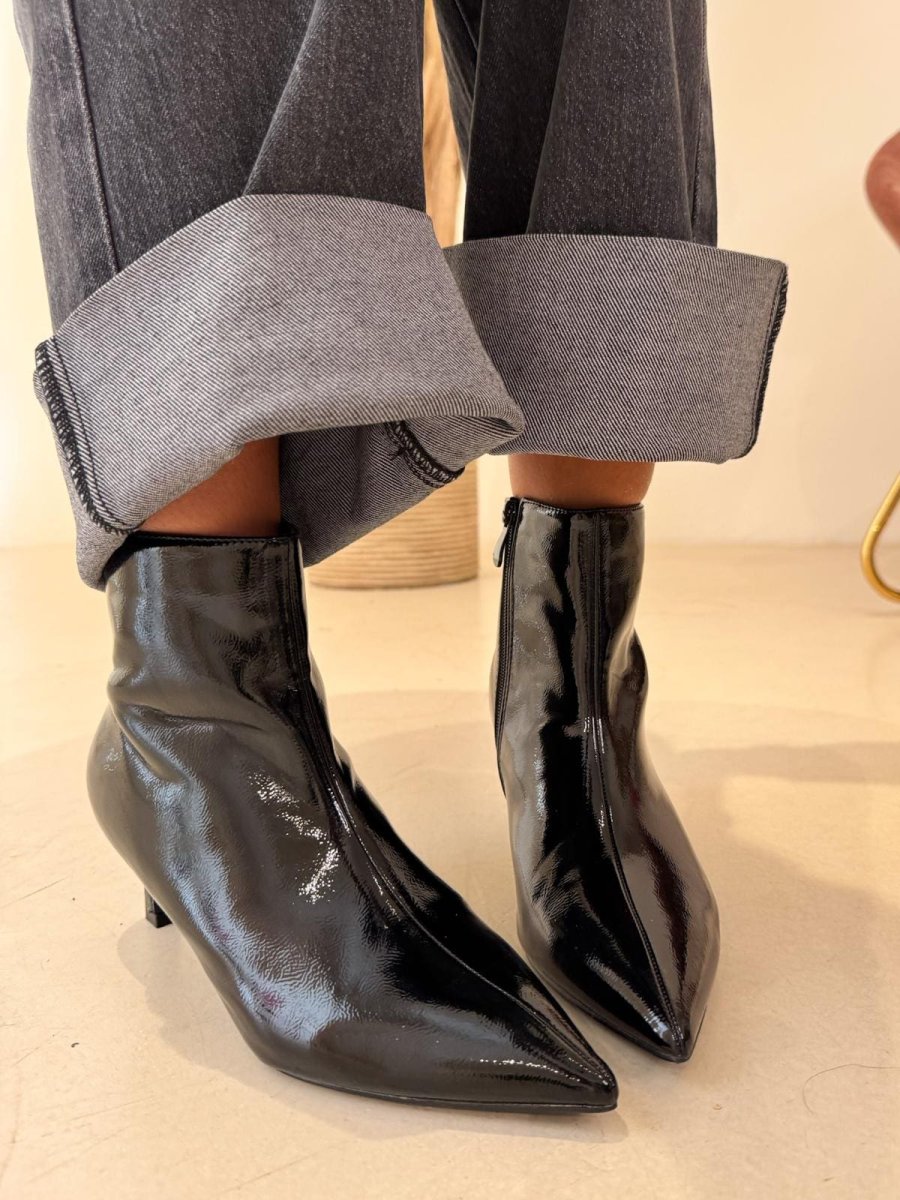 Stivaletto a punta Altezza alla caviglia Nero lucido