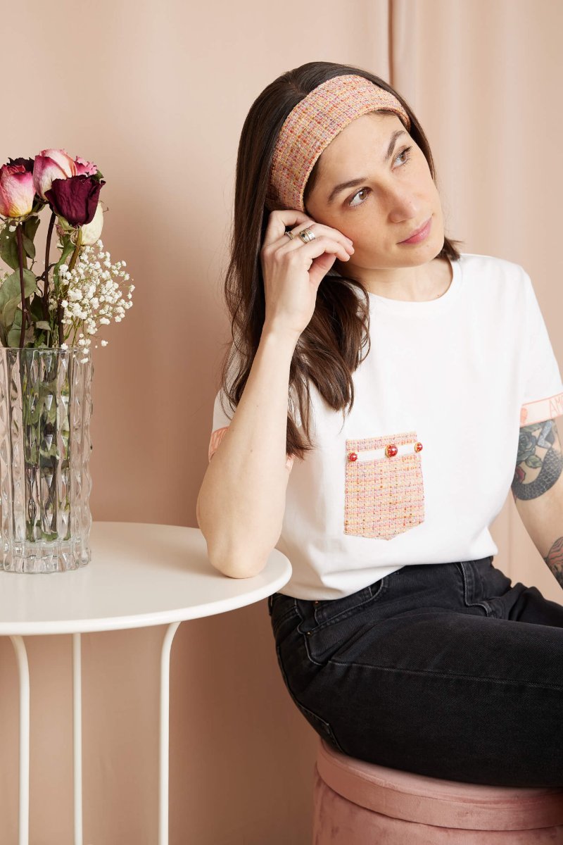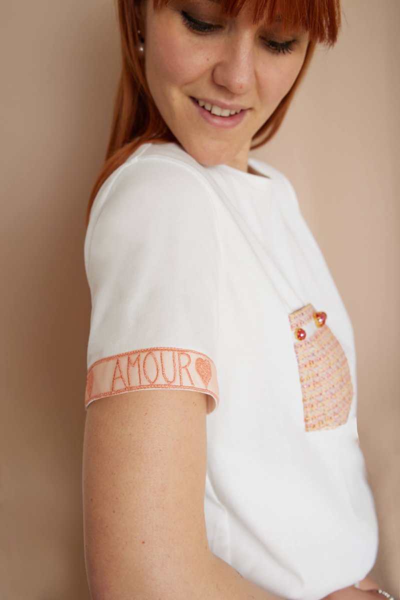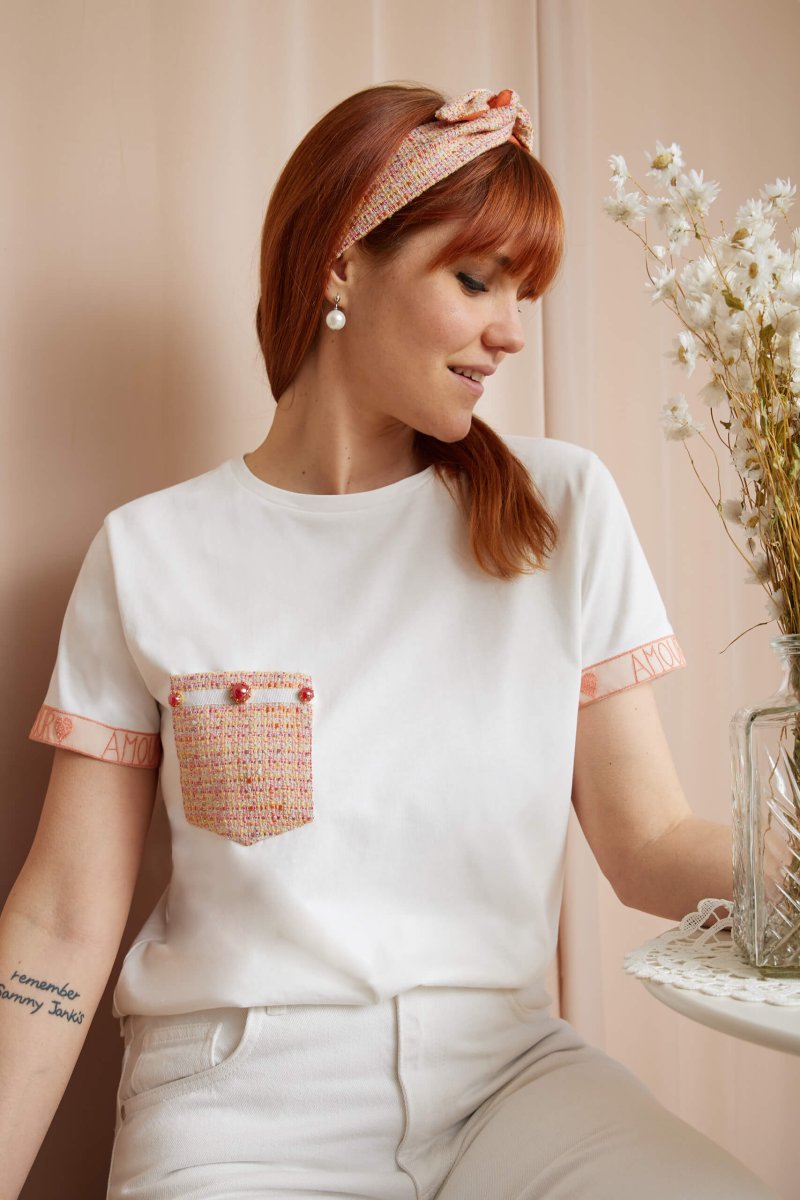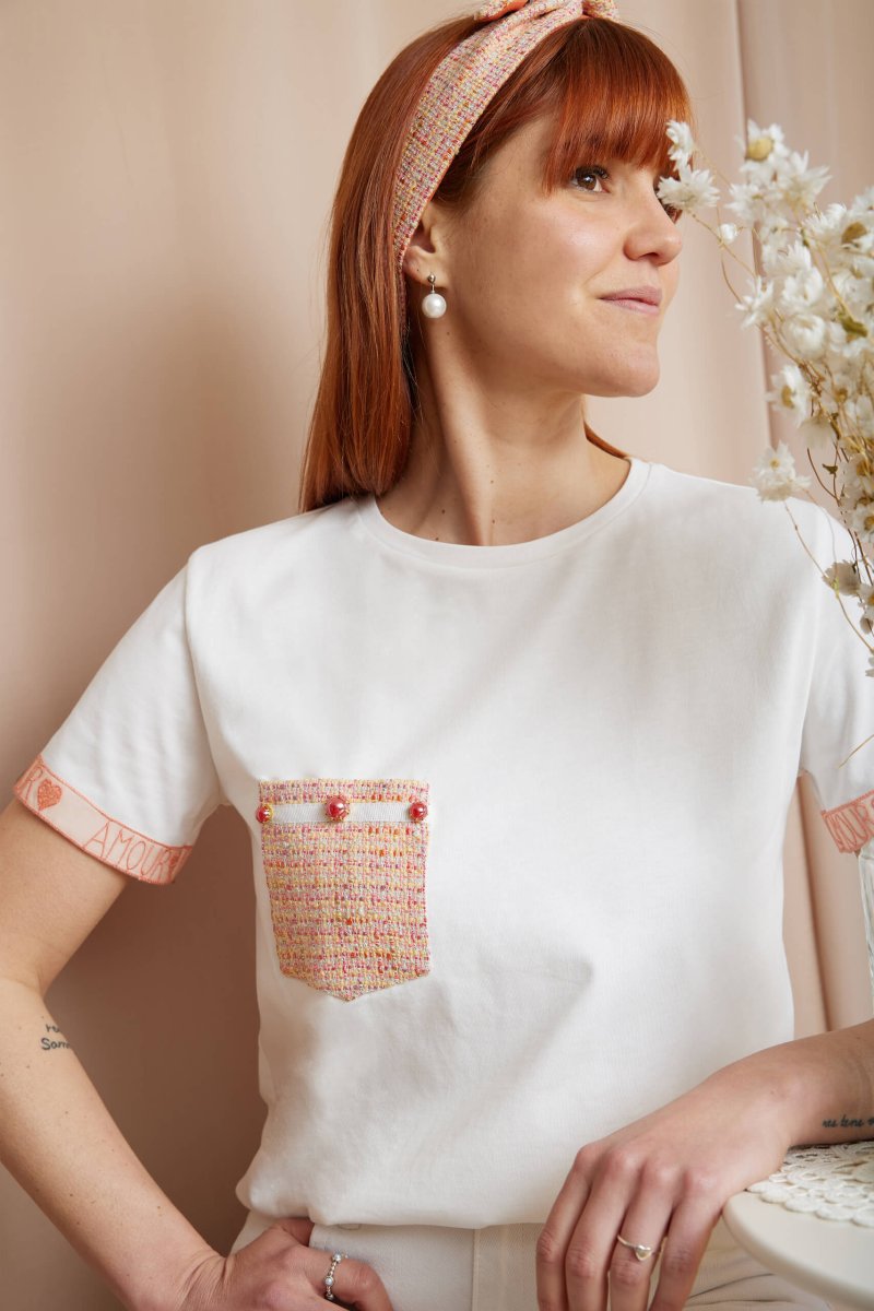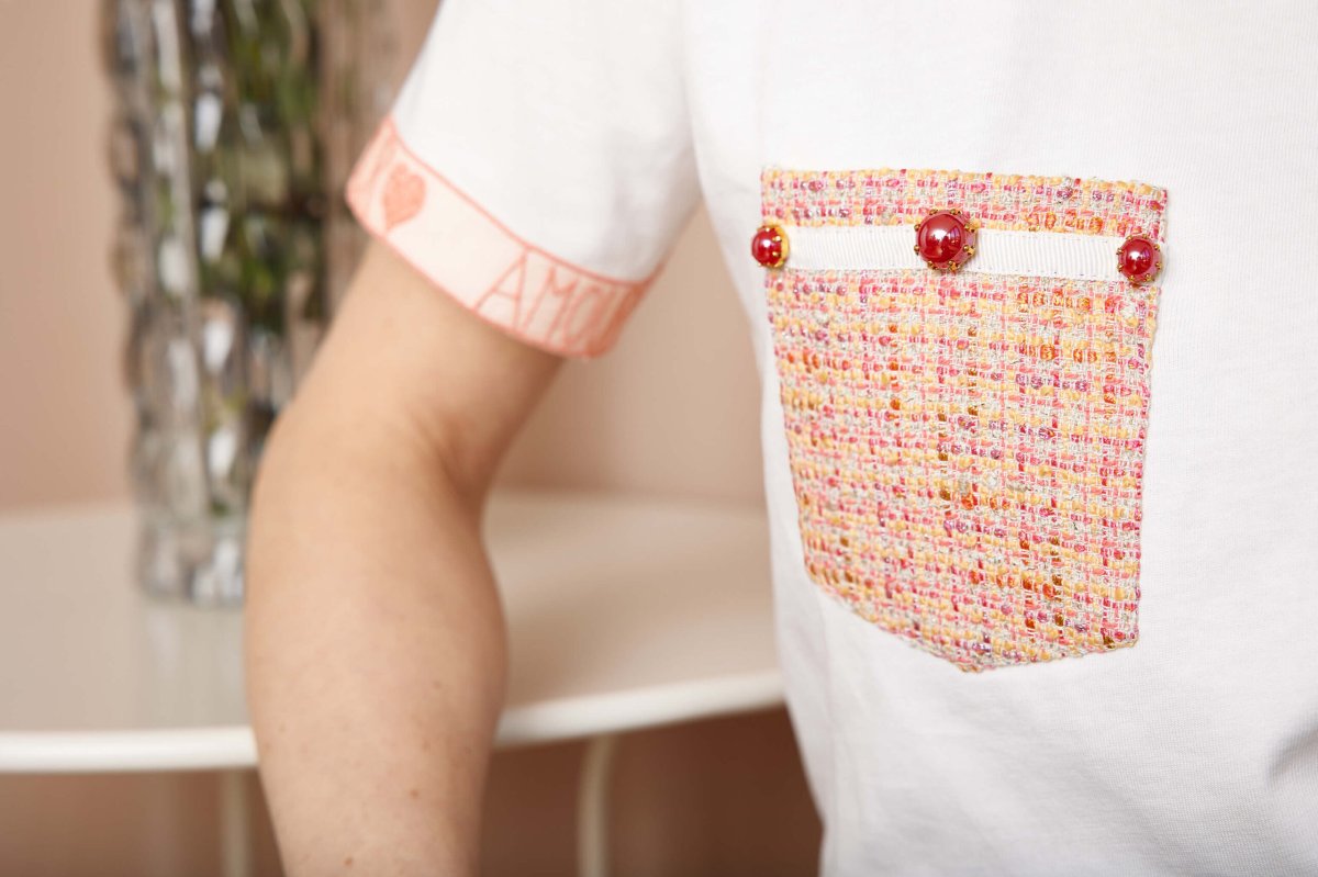 Dal taschino in tessuto chanel ai ricami su tulle ecco la t-shirt ideale per chi non vuole rinunciare ai dettagli romantici.