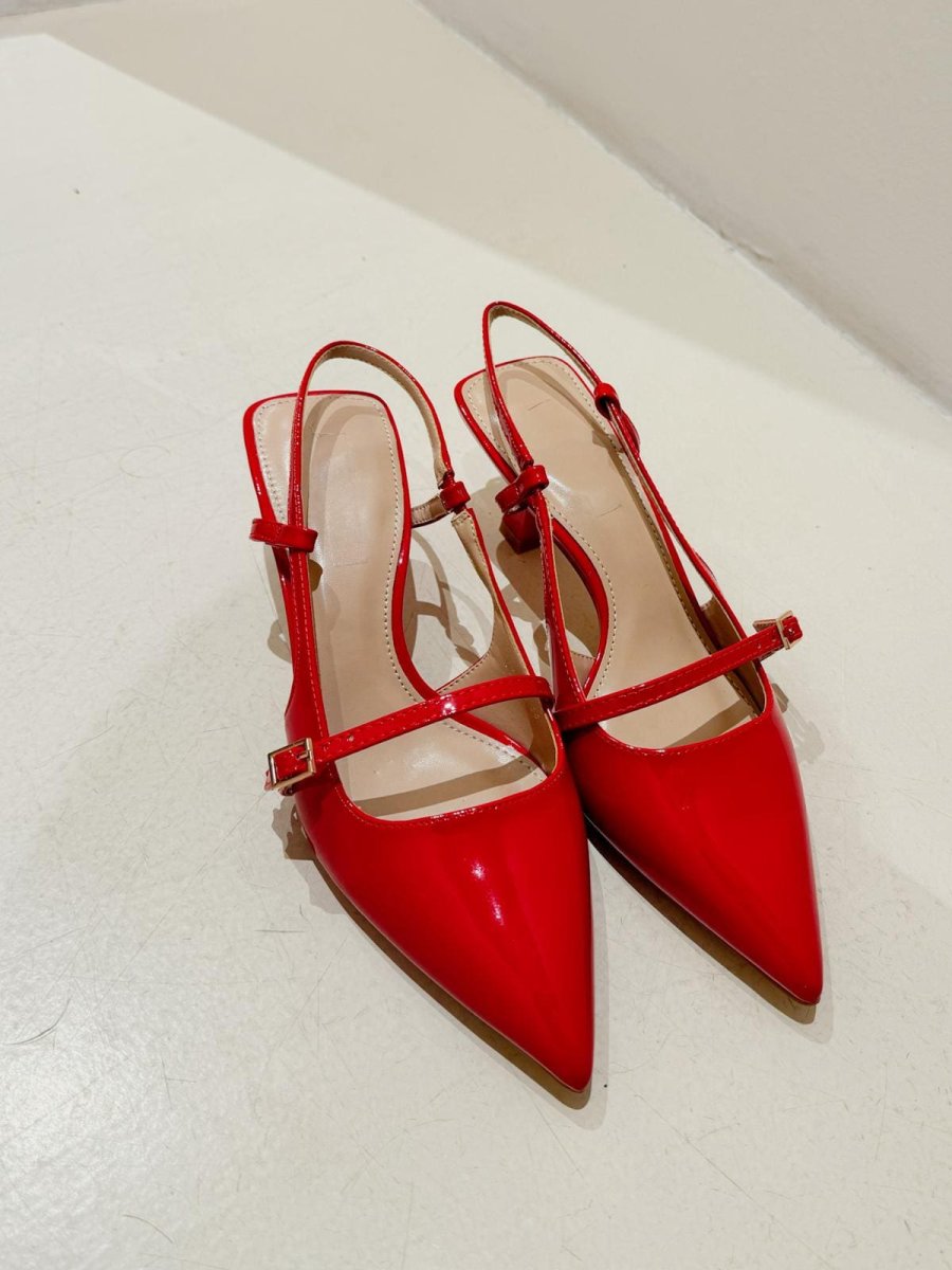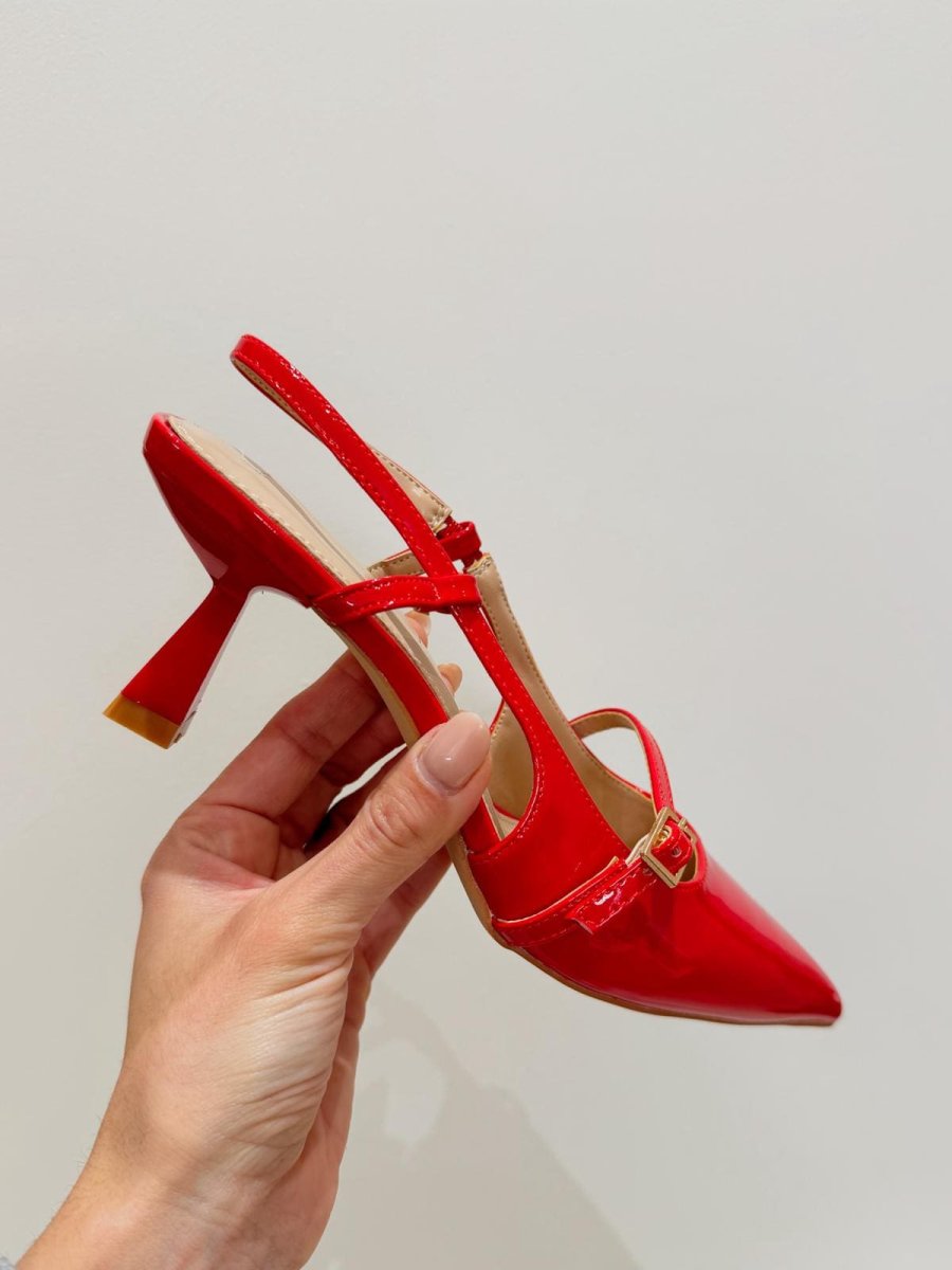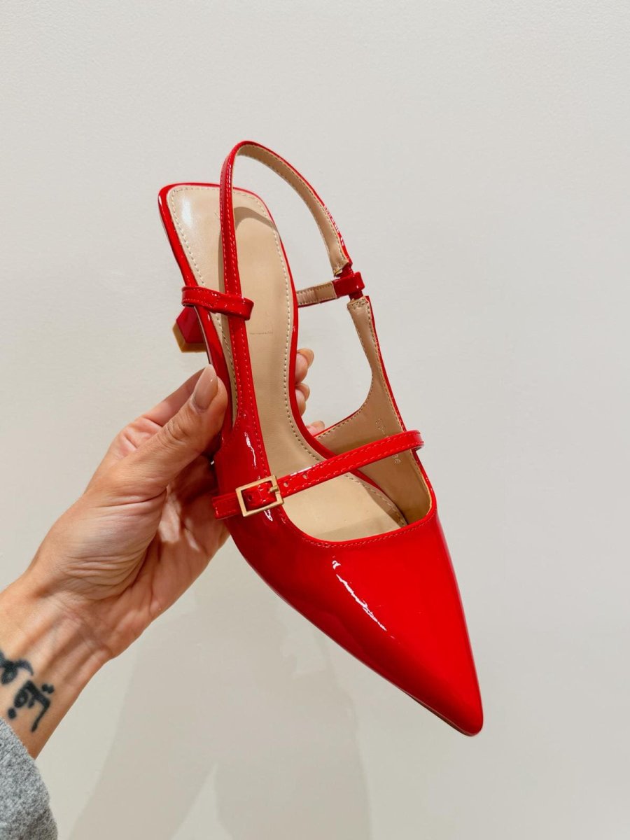 tacco in vernice rossa lucida tacco 3cm a rocchetto calzata regolare