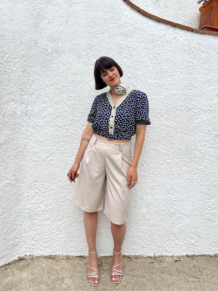 - Customize: resa crop al fondo e arricciata con un elastico, maniche rese a palloncino con elastico al fondo