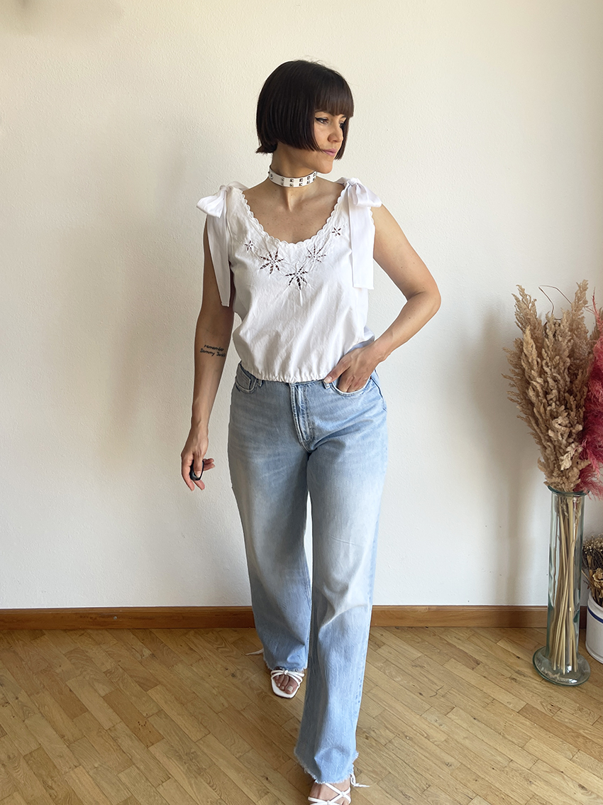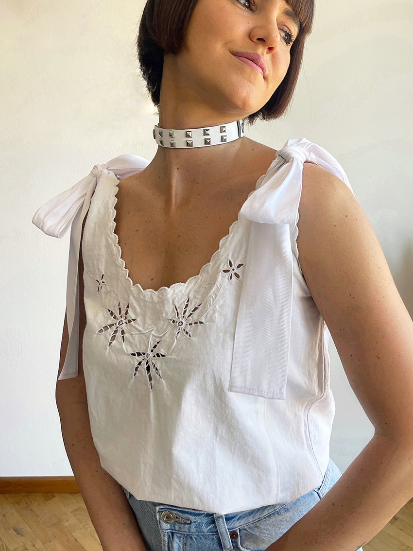 Una (ex) camicia da notte con i ricami che solo gli autentici capi vintage possono avere.. non poteva che diventare un top con maxi fiocchi 💝