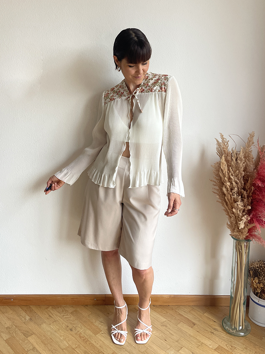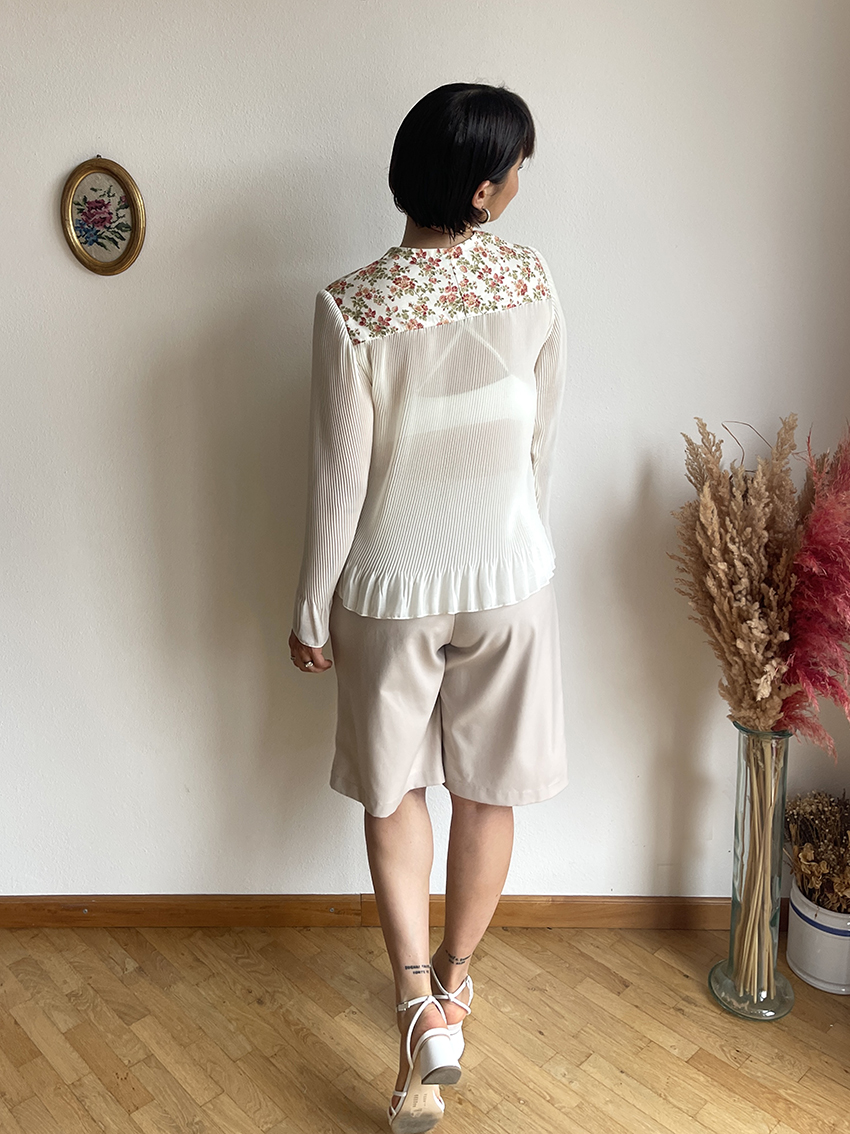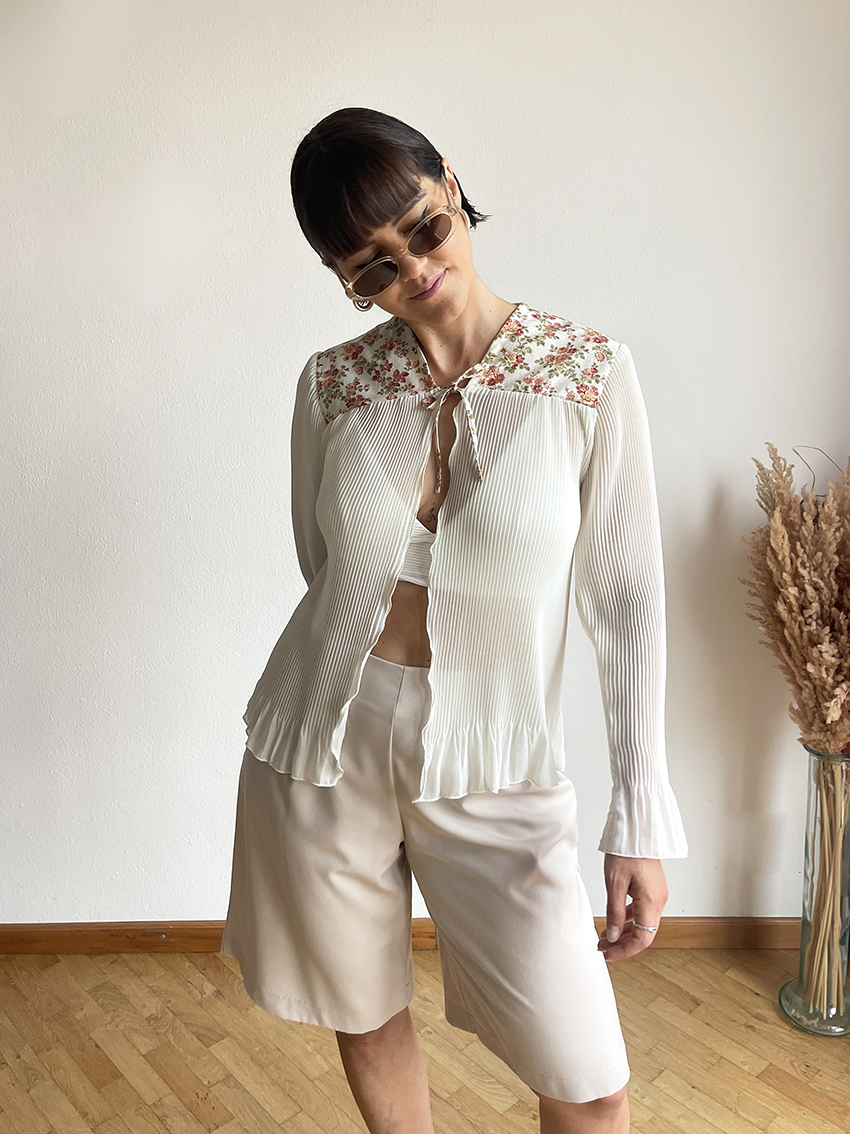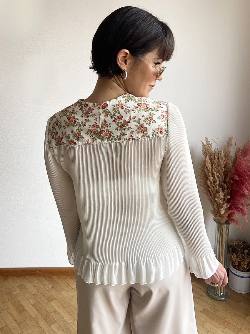 La leggerezza del plissè e il romanticismo dei tessuti patchwork: da questo mix nasce una camicia da indossare su canottiere, top oppure come se fosse un cardigan, in autunno, su camicie e lupetti!