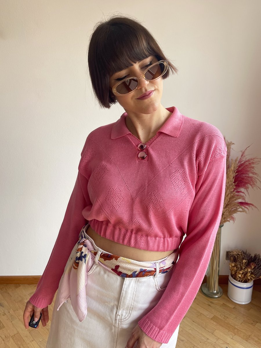 - Customize: reso crop con elastico al fondo + ricamo di strass tondi ton sur ton sul davanti