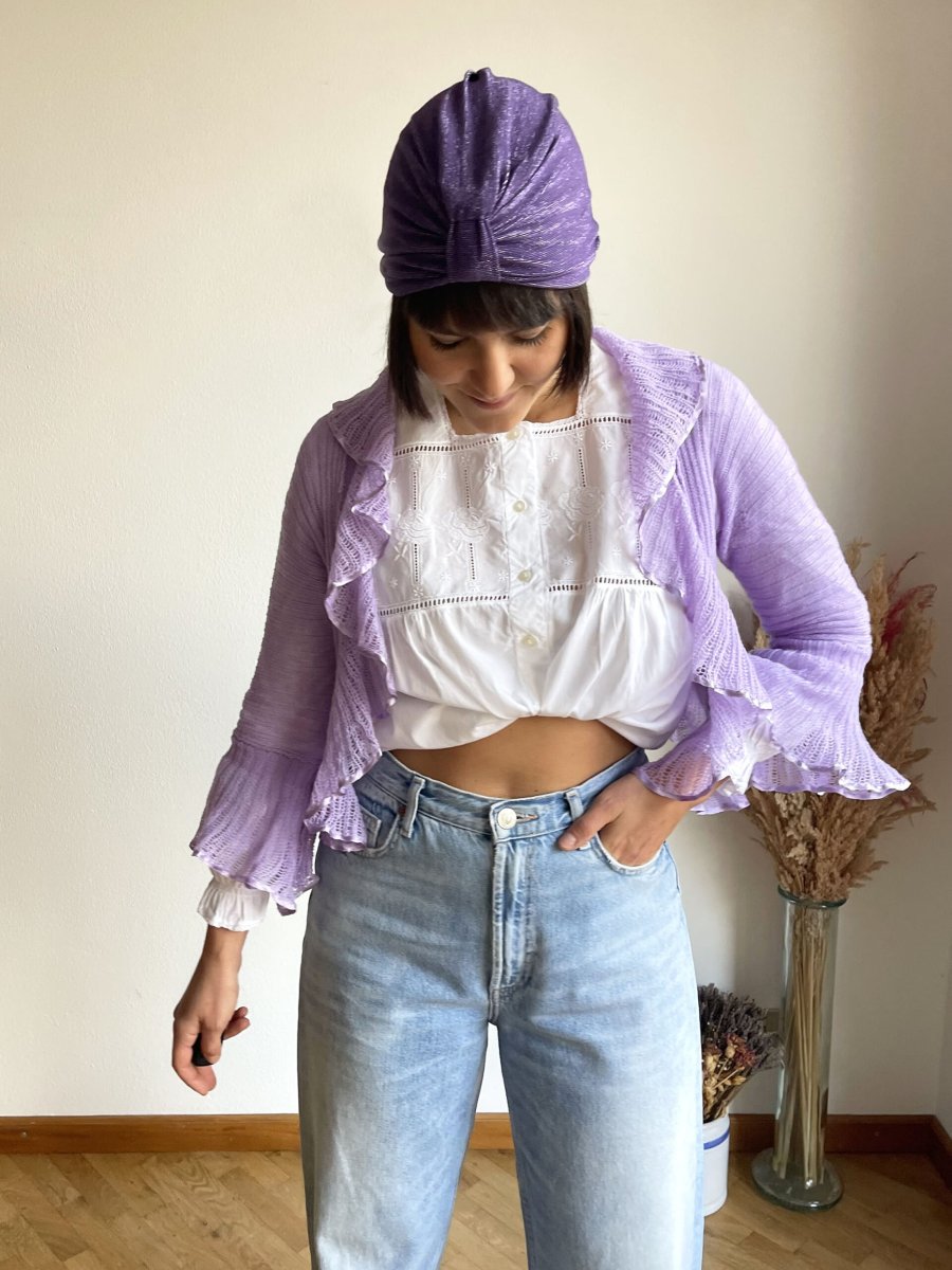 Vintage Pop in Lilac: il micro cardigan con le ruches per un tocco di colore retrò al vostro look 💜