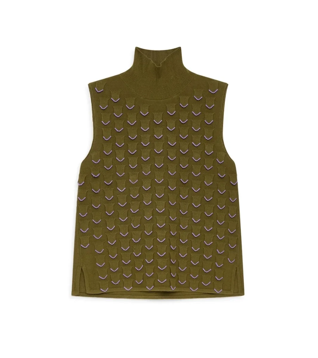 Il TOP 3D STITCH è una maglia essenziale che non passa inosservata grazie ai suoi dettagli unici. Il motivo tridimensionale “Fish” è intagliato e fermato a mano, creando un gioco di forme e texture che si muovono fluidamente. Con il collo alto e la linea asciutta, questo top è il perfetto equilibrio tra grafismo e femminilità contemporanea 🌱