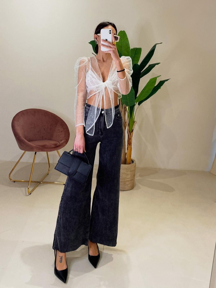 Top in organza In trasparenza con applicazioni brillanti Manica a sbuffo Veste dalla XS alla M Sofia H 173cm