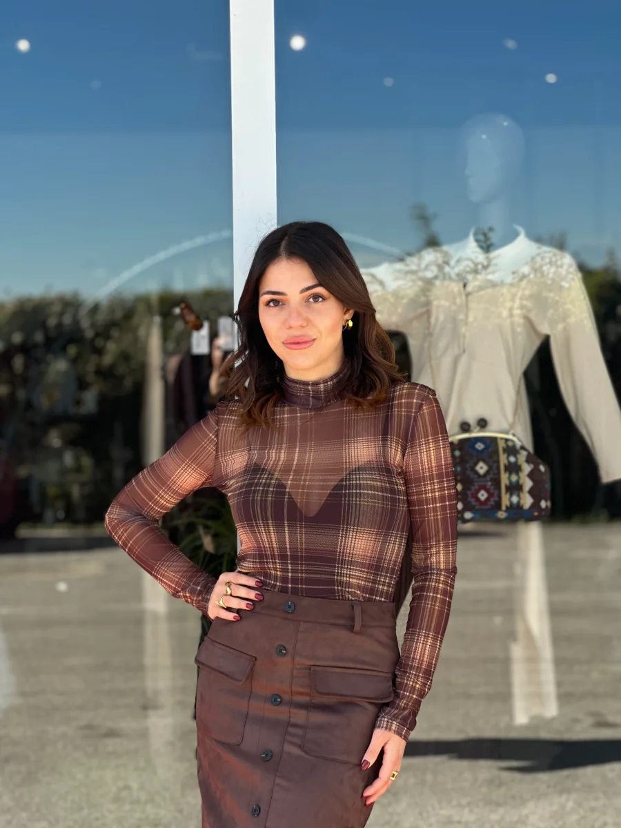 Maglietta velata a fantasia.