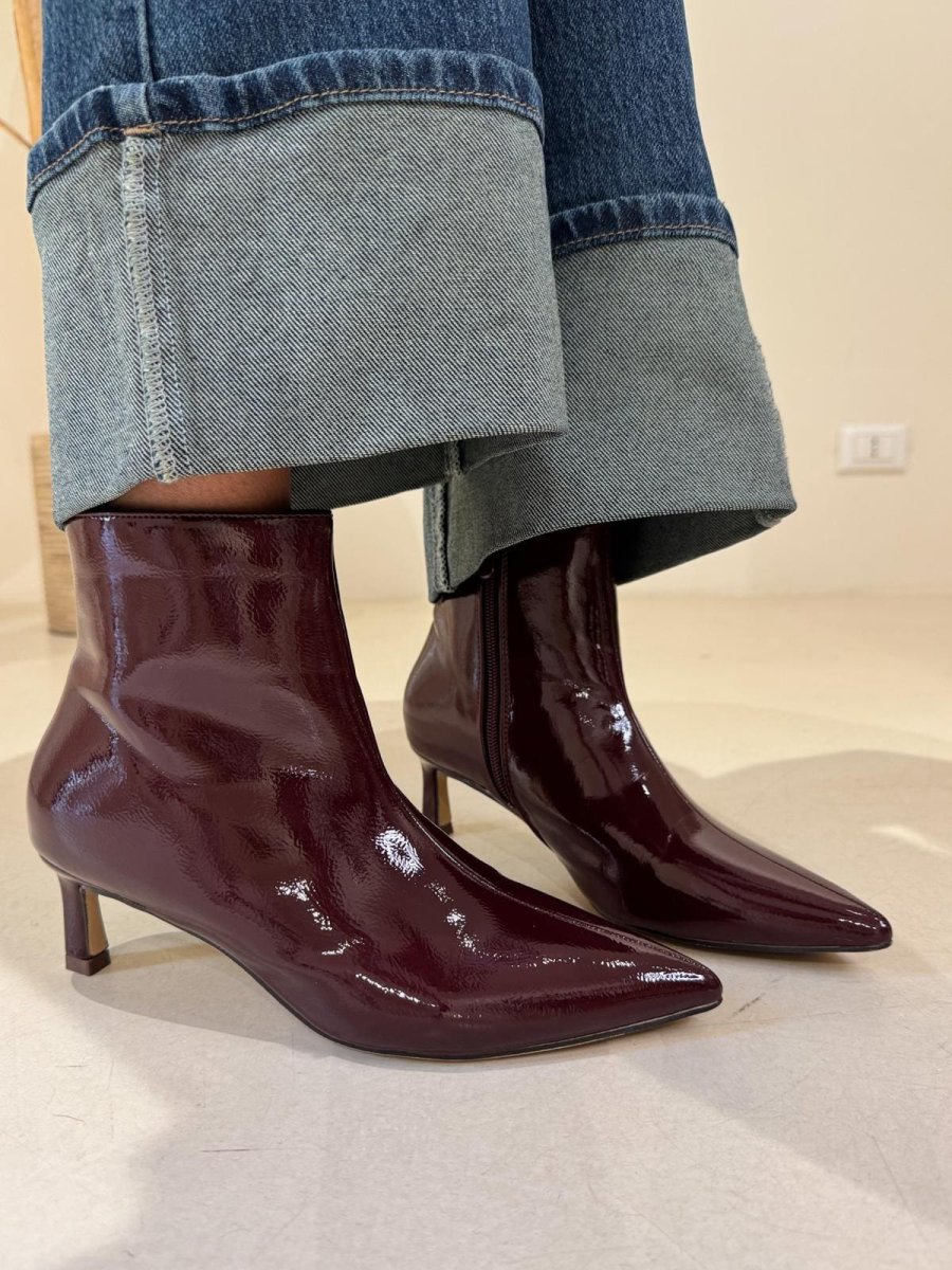 Tronchetto cherry pelle lucida tacco 5 cm chiusura con cerniera nella parte interna