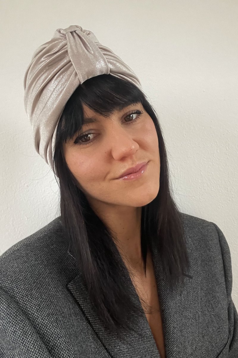 Un turbante in un bellissimo color crema argentato, luminoso e brillante al punto giusto per dare quel tocco in più ai vostri outfit ✨