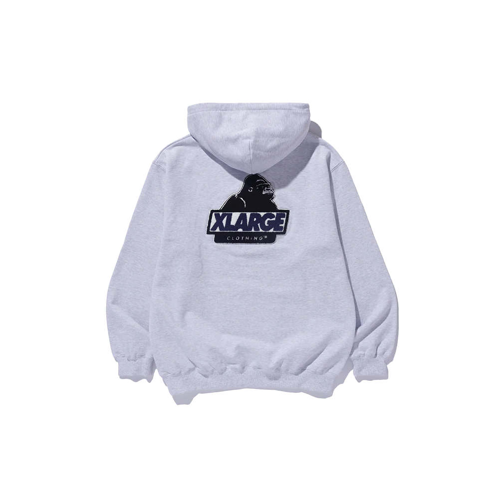 Felpa con cappuccio con logo ricamato sul davanti e patch in ciniglia sul retro